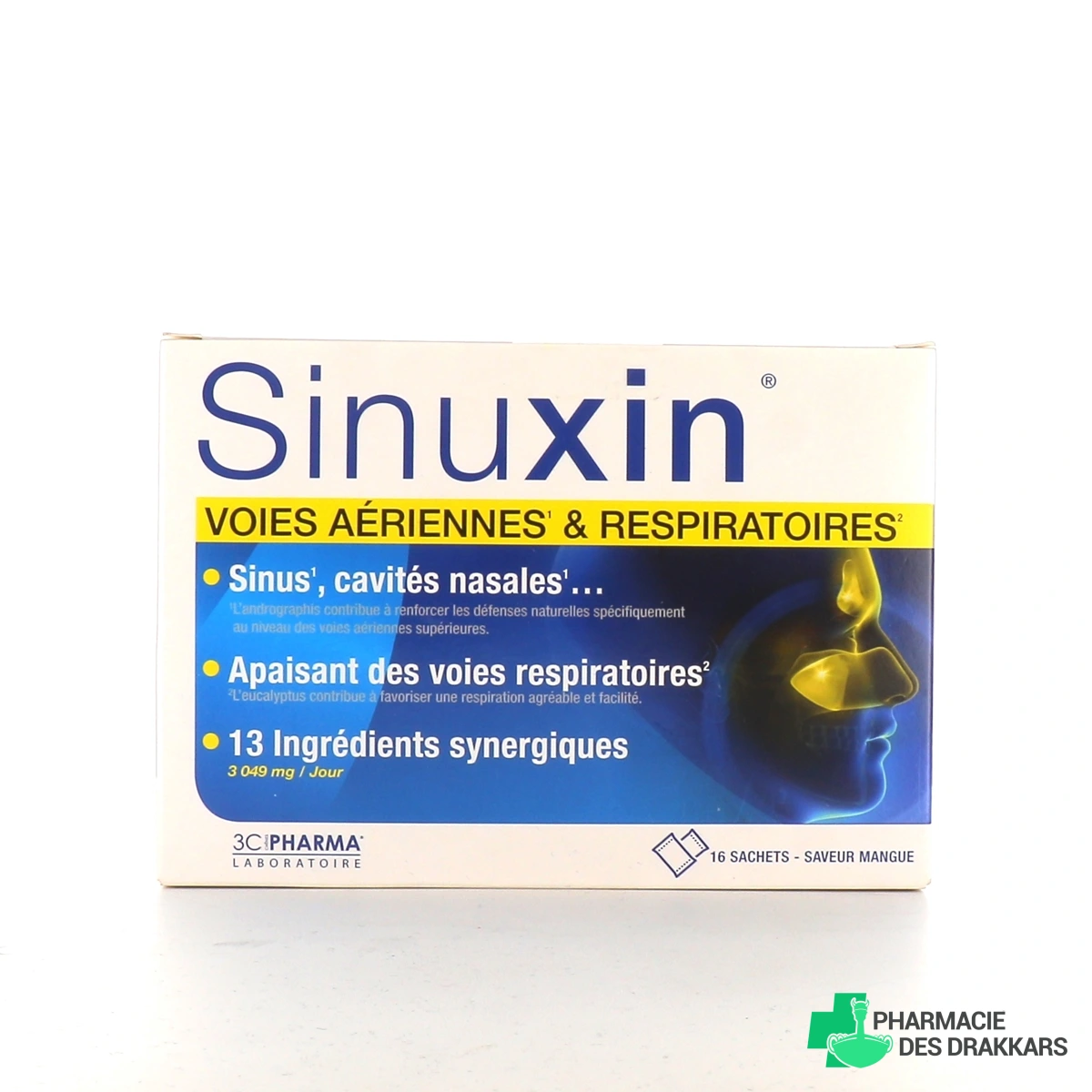 Sinuxin est un complément alimentaire de la marque 3C Pharma. Il est formulé avec des extraits de plantes et est indiqué pour les voies aériennes et respiratoires.