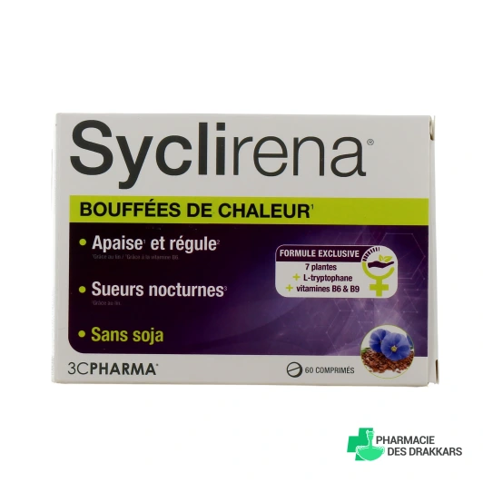 Vous pourrez sélectionner le complément alimentaire 3C Pharma Syclirena Bouffées de Chaleur parmi les présentations suivantes sur notre pharmacie en ligne : boîte de 60 comprimés.
