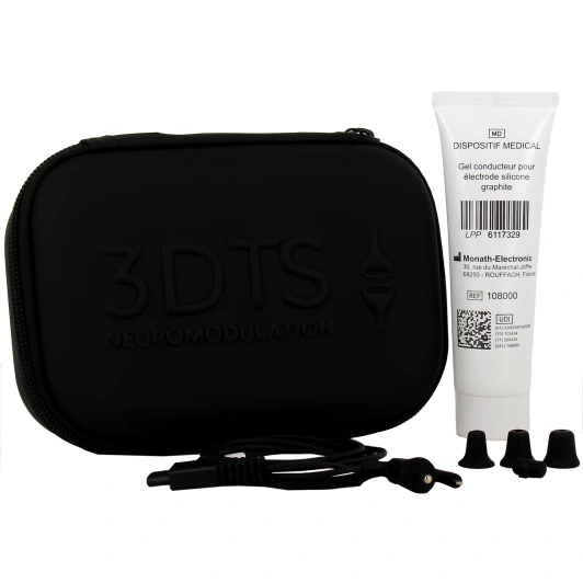 Le kit Nerf Vague 3DTS représente une solution non invasive de stimulation vagale ou stimulation neuro-vagale, c'est à dire une stimulation électrique du nerf vague (également appelé nerf pneumogastrique). Il est destiné à être utilisé avec un neurostimulateur TENS Eco, TENS Eco 2, URO Stim 2 ou autre neurostimulateur de la même marque (non inclus dans le kit, à acheter séparément).