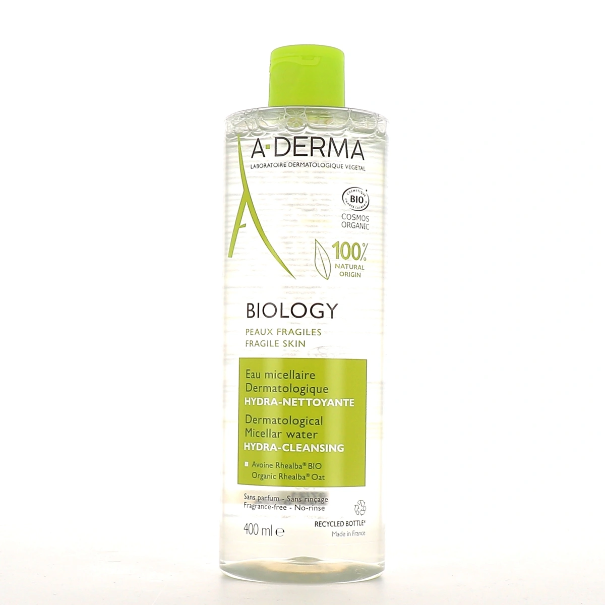 Pour respecter l'équilibre des peaux fragiles, A-Derma a développé l'eau micellaire Biology 100% d'origine naturelle. Tout comme les autres produits de la gamme Biology de la marque A-derma, cette eau micellaire est formulée à base de sève d'avoine Rhealba Bio, actif non-agressif nettoyant et hydratant. Cet actif favorise l'élimination des impuretés tout en laissant la peau douce. Cette eau micellaire élimine tout en douceur le maquillage, la pollution ainsi que les impuretés accumulées en surface grâce à l'extrait de florin d'or. Elle participe également au rééquilibrage du microbiome de la peau. Avec une texture fraîche et non collante, cette eau micellaire démaquille tout en douceur les peaux sensibles et les hydrate en profondeur.