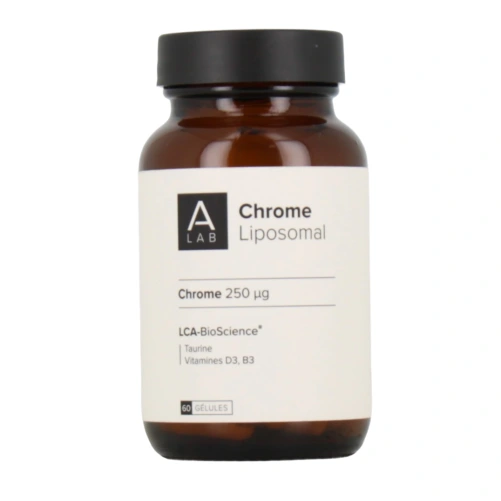 Chrome Liposomal est un complément alimentaire formulé par le laboratoire A-LAB avec du chrome, de la taurine, de la vitamine D3 et de la vitamine B3. Il se présente sous la forme de gélules.