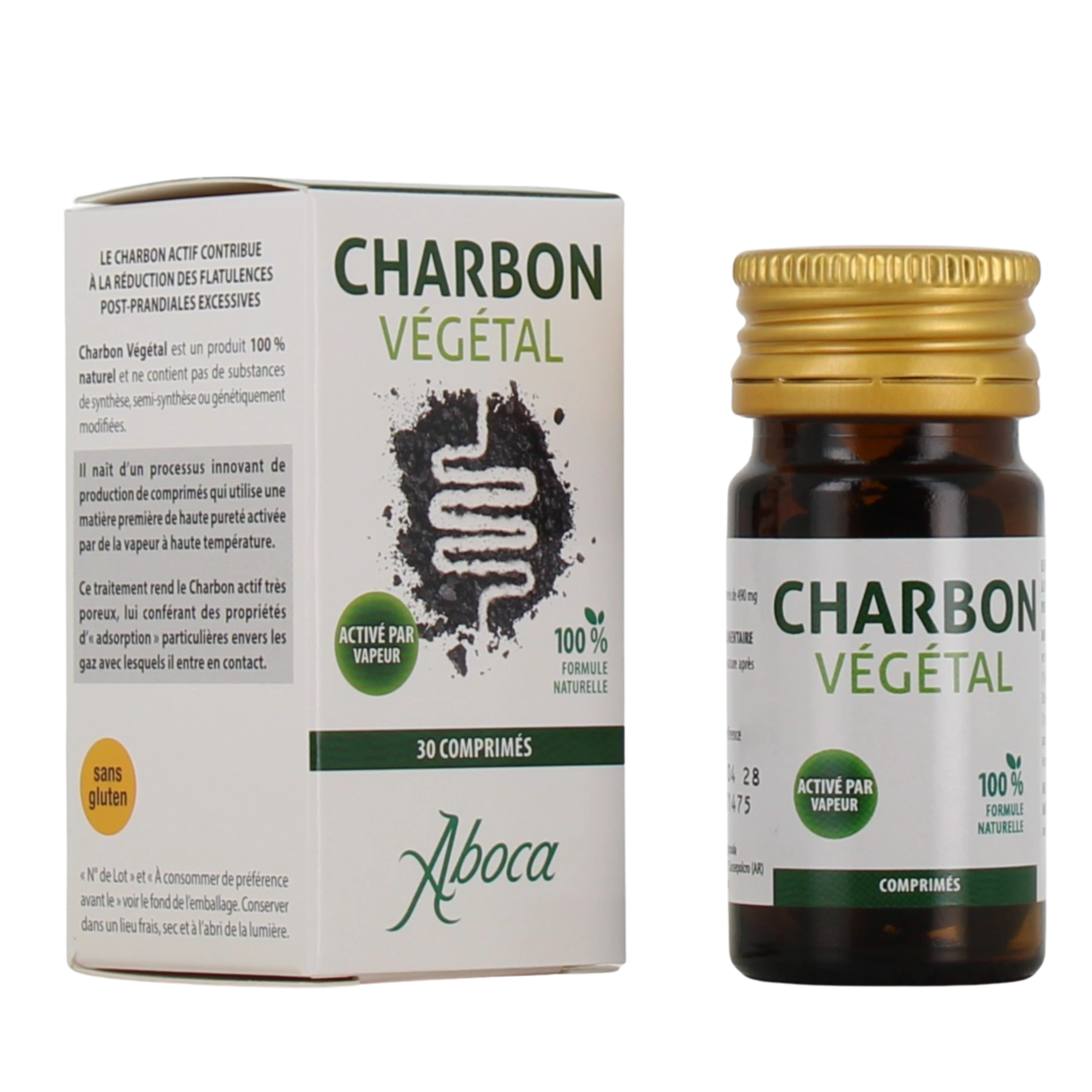 Aboca Charbon Végétal est un produit qui ne contient pas de substances de synthèse, semi-synthèse ou génétiquement modifiées. Il résulte d'un procédé innovant de fabrication de comprimés, utilisant une matière première de haute pureté activée par de la vapeur à température élevée. Ce traitement rend le charbon actif très poreux, lui conférant des propriétés particulières d'« adsorption » envers les gaz avec lesquels il entre en contact. Il contribue à la réduction des flatulences post-prandiales excessives.