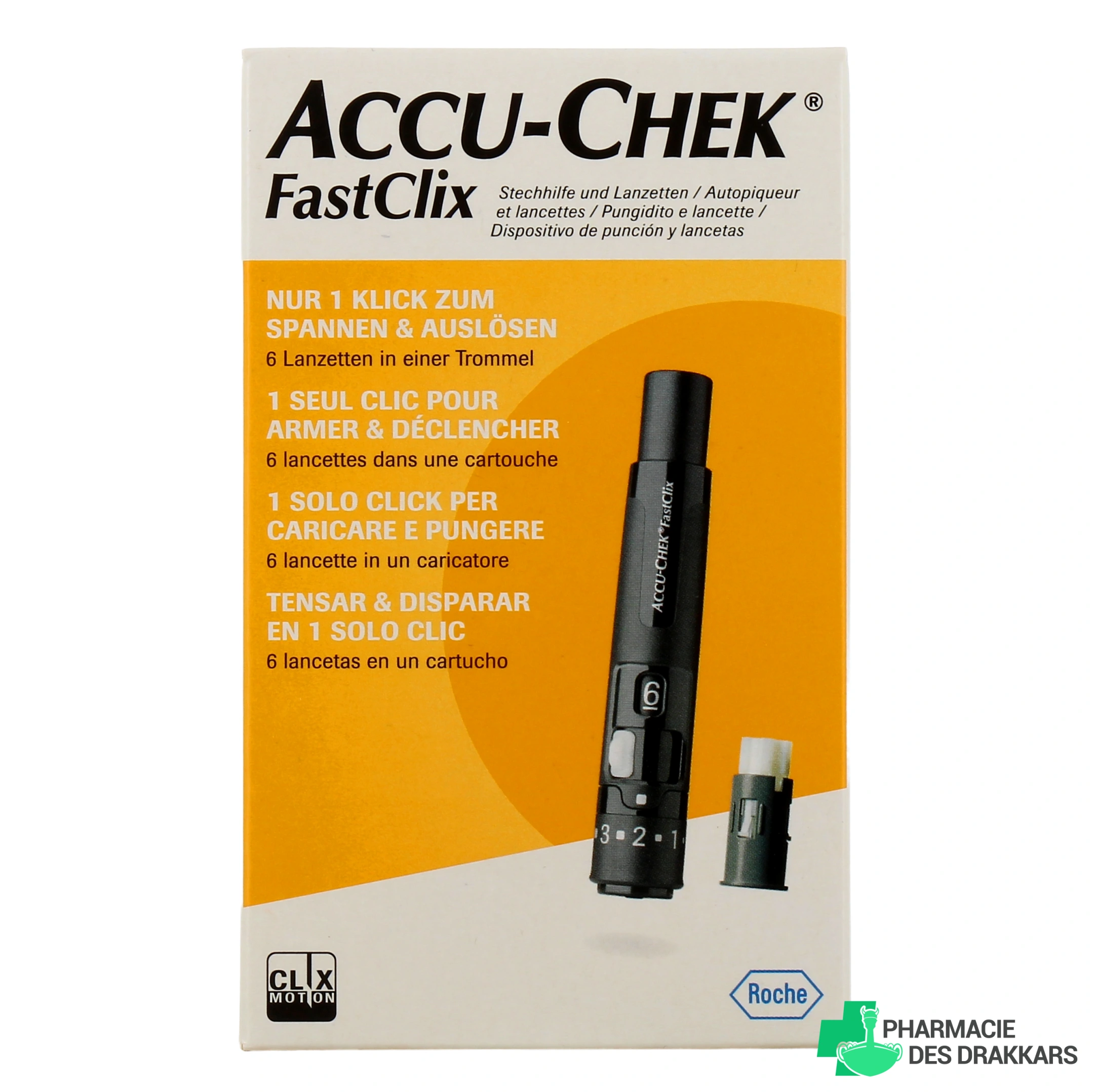 Le stylo autopiqueur Accu-Chek FastClix est un dispositif qui permet de prélever le sang capillaire sur la pulpe du doigt, facilement et sans douleur, dans le cadre de la gestion du diabète. Cet accessoire vous permet donc de contrôler à la maison votre taux de glycémie afin de vous assurer que celui-ci ne soit pas trop élevé.