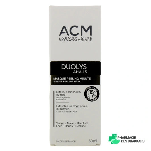Présentation proposée pour le masque peeling minute ACM Duolys AHA 15 sur notre pharmacie en ligne : Tube de 50 ml