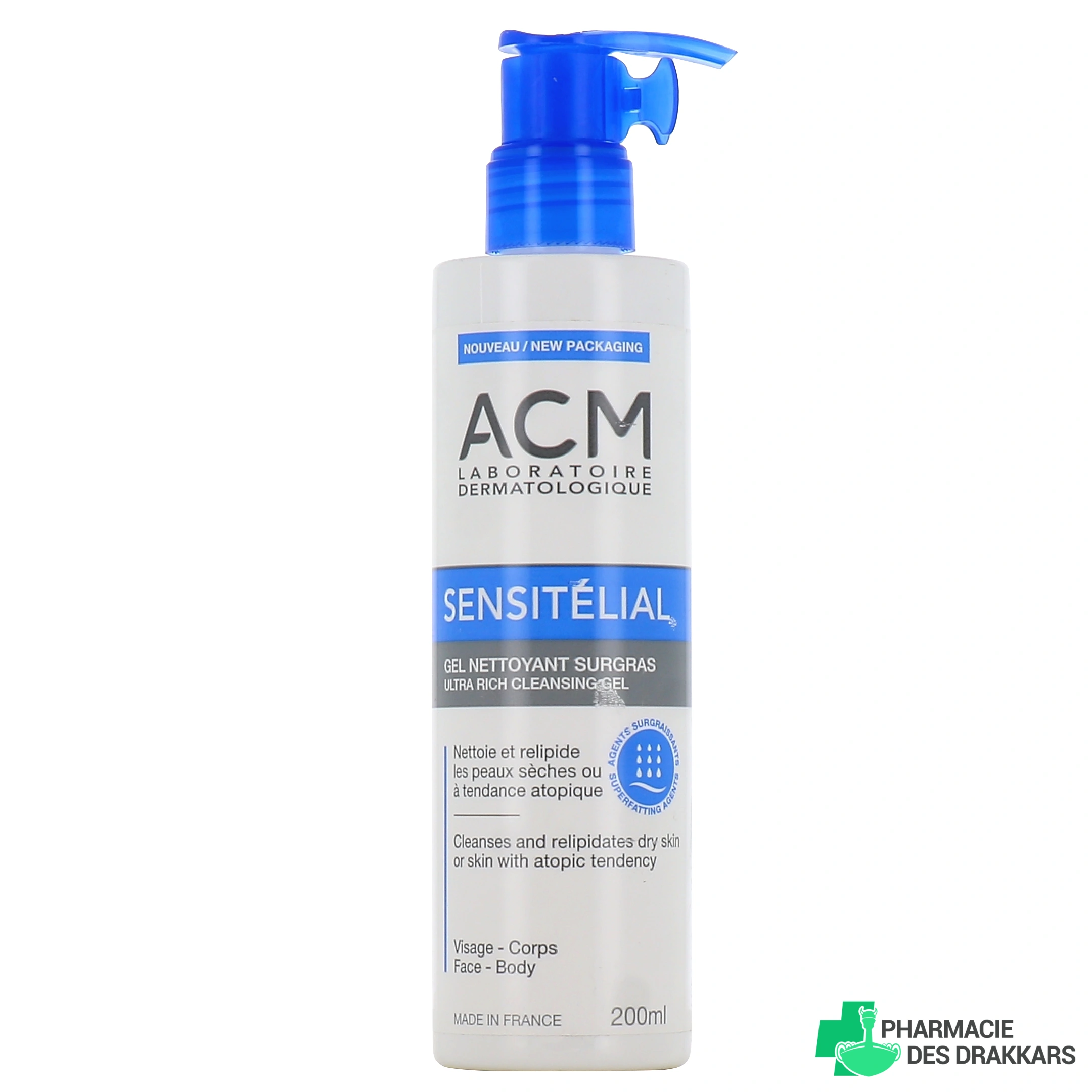 Le gel nettoyant surgras Sensitélial ACM est un soin nettoyant et relipidant spécialement formulé pour répondre aux besoins des peaux sèches et atopiques. Il s'utilise sur le visage et sur le corps des adultes et des enfants au moment de la toilette quotidienne et laisse la peau parfaitement nettoyée et hydratée.