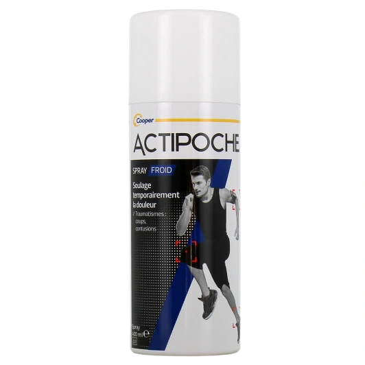 Le spray froid Actipoche est un dispositif de cryothérapie (également appelée thérapie par le froid) recommandé en cas de traumatismes pouvant survenir au cours de la pratique sportive, à l'image des chocs et des contusions, des élongations, des entorses ou encore des claquages. Prêt à l'emploi et simple d'utilisation, il agit en soulageant rapidement la douleur à l'aide d'une action de froid instantané.
