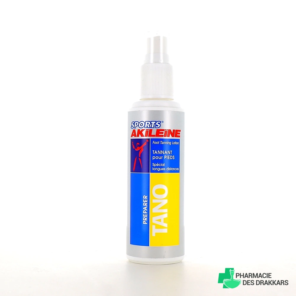 Conditionnement proposé par la Pharmacie des Drakkars pour la lotion tannante pieds Akileïne Sports : Spray de 100ml