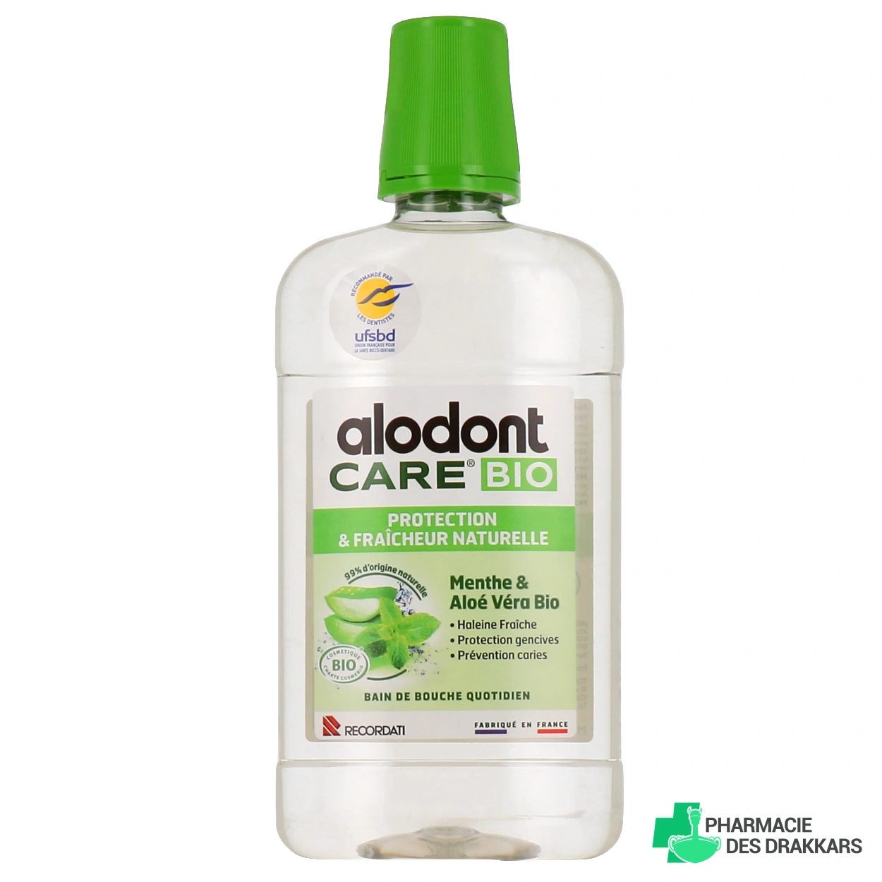 Le bain de bouche quotidien Alodont Care Bio est un produit d'hygiène bucco-dentaire. Il participe à la protection des gencives et à la prévention des caries tout en apportant une fraîcheur naturelle.