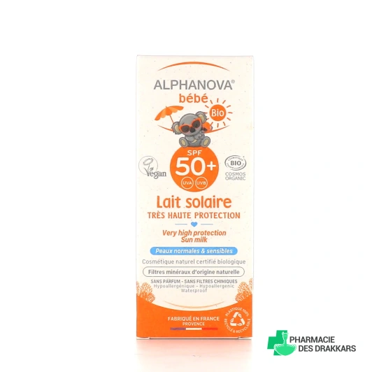 Avec son SPF 50+, le lait solaire bio Alphanova Bébé offre une très haute protection contre les UVA et UVB. Il préserve le capital soleil des bébés et des enfants en bas âge.