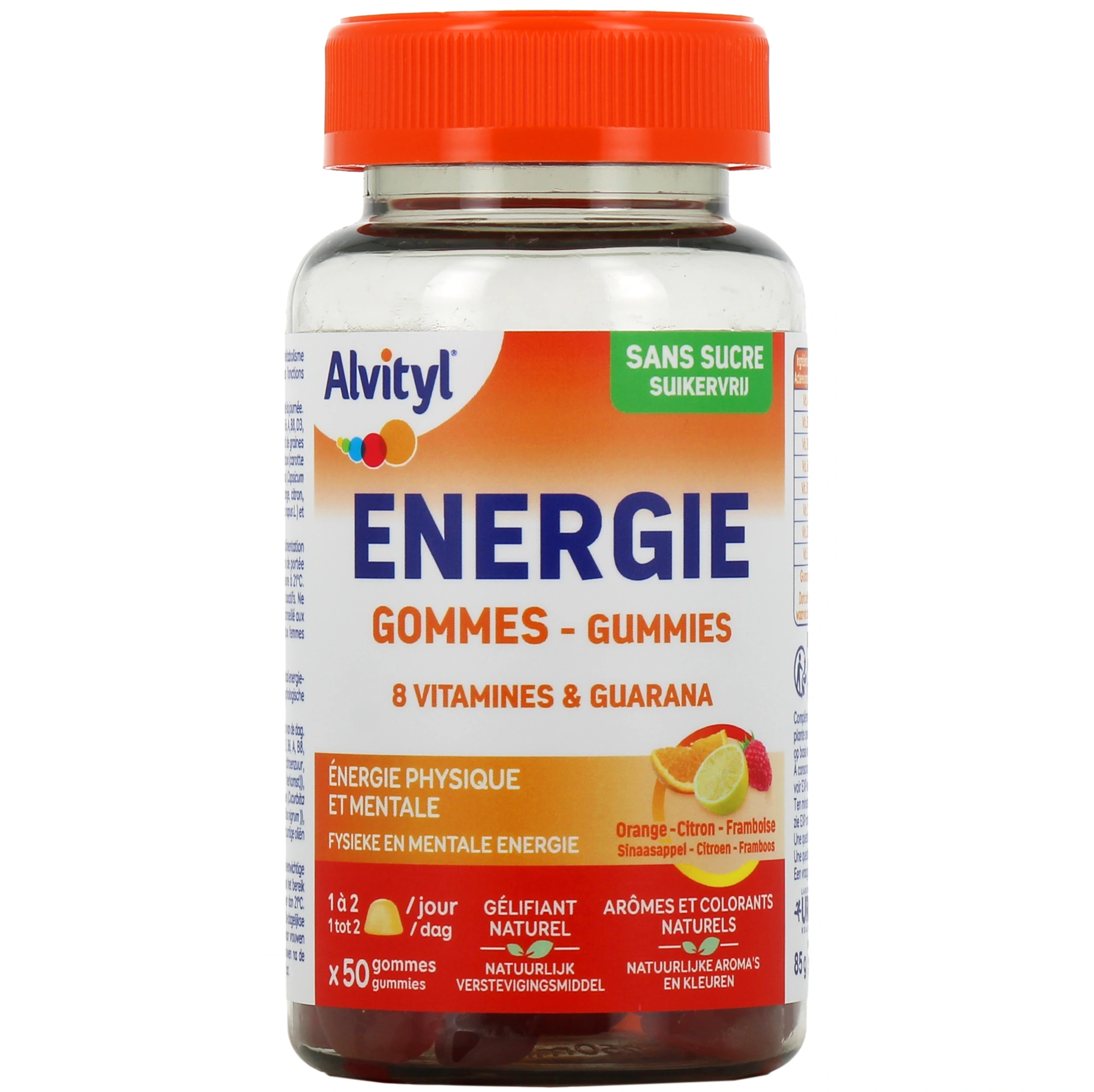 Les gommes Energie proposées par la marque Alvityl sont des compléments alimentaires. Associant 8 vitamines et de l'extrait de guarana, elles sont particulièrement indiquées pour soutenir l'énergie physique et mentale.