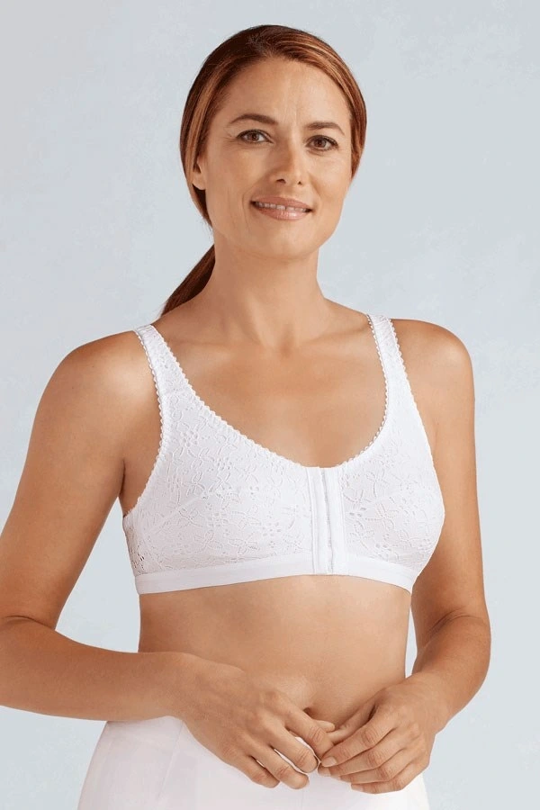 Le modèle Sandra des laboratoires Amoena esr un soutien-gorge postopératoire pour mastectomie livré avec fibre de remplissage, il présente des bonnets moulés et des poches 100 % coton, conçues pour maintenir la fibre de remplissage ou une Priform. Les bretelles sont larges et souples, réglables dans le dos. Une fermeture devant ajustable pour faciliter la mise en place.