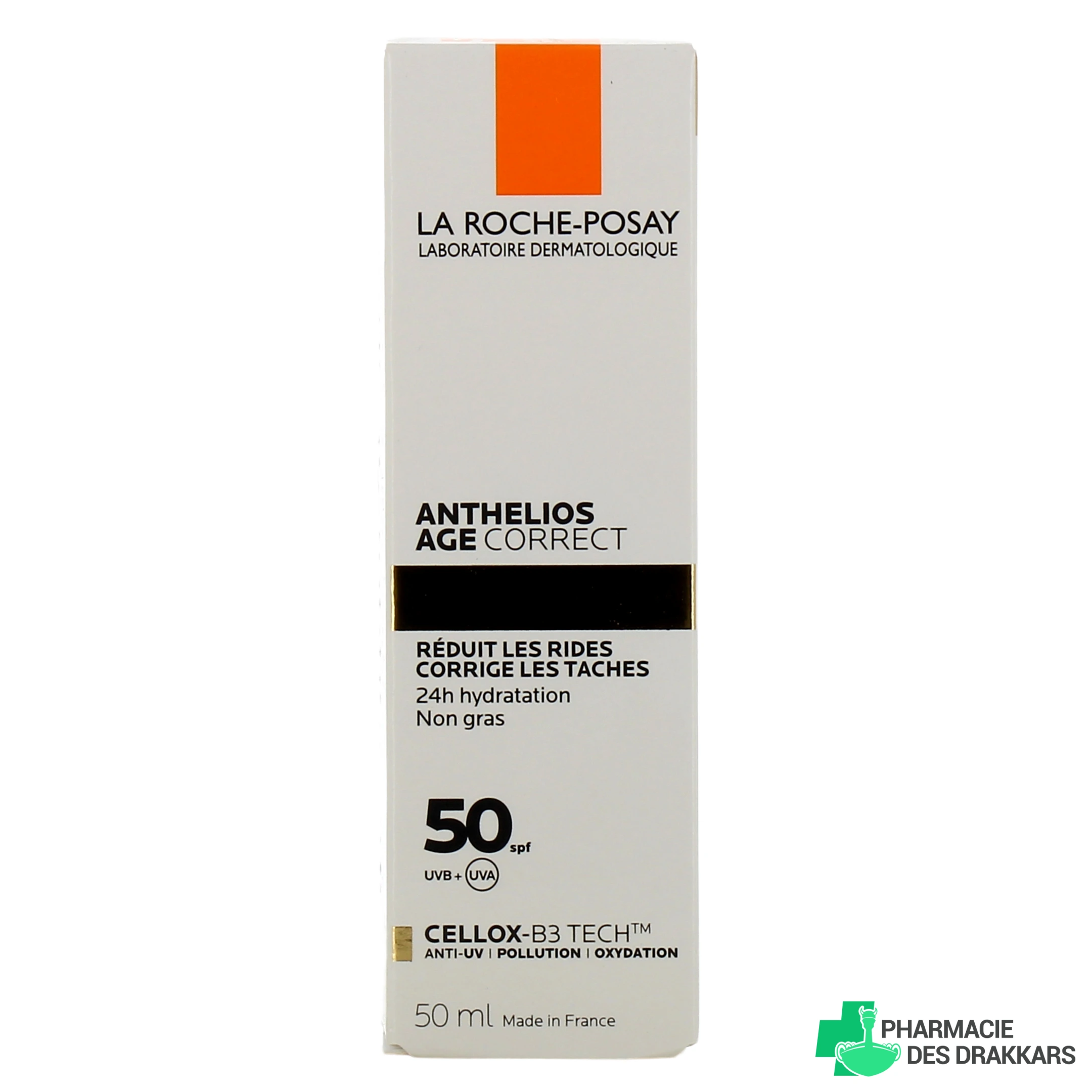 Le soin solaire Anthelios Age Correct SPF 50 La Roche-Posay vous apporte ainsi une protection contre les rayons UV (UVA et UVB), contre l'oxydation cellulaire et contre la pollution. Enrichi en vitamines E et B3, ainsi qu'en eau thermale de La Roche-Posay, Anthelios Age Correct est également un soin anti-âge grâce à l'acide hyaluronique fragmenté qui hydrate les différentes couches de l'épiderme et comble les petites rides.