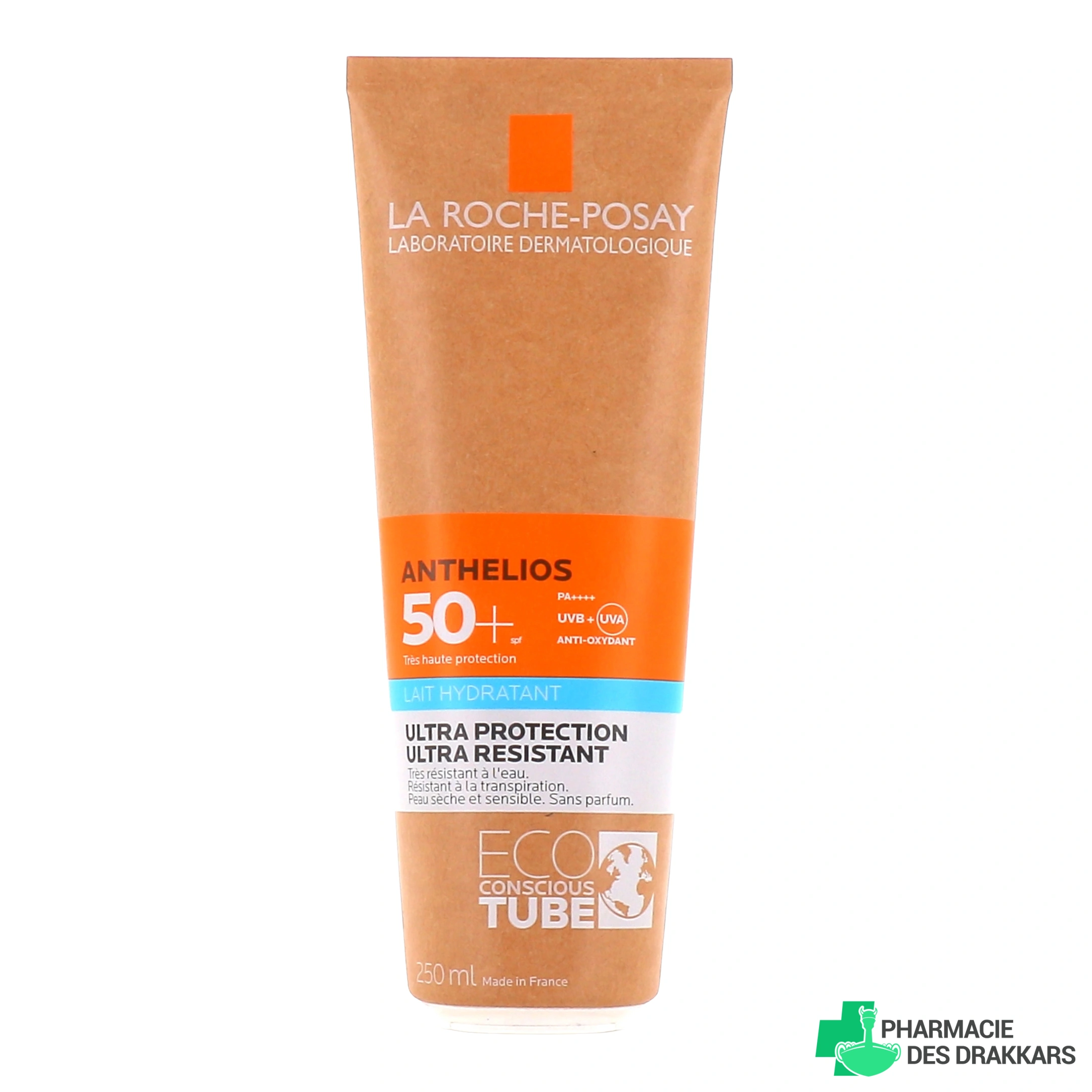 Le Lait Hydratant Solaire Sans Parfum Anthelios de La Roche Posay est une protection solaire SPF50+ idéale pour les peaux sèches et sensibles, et à l'emballage éco-responsable.