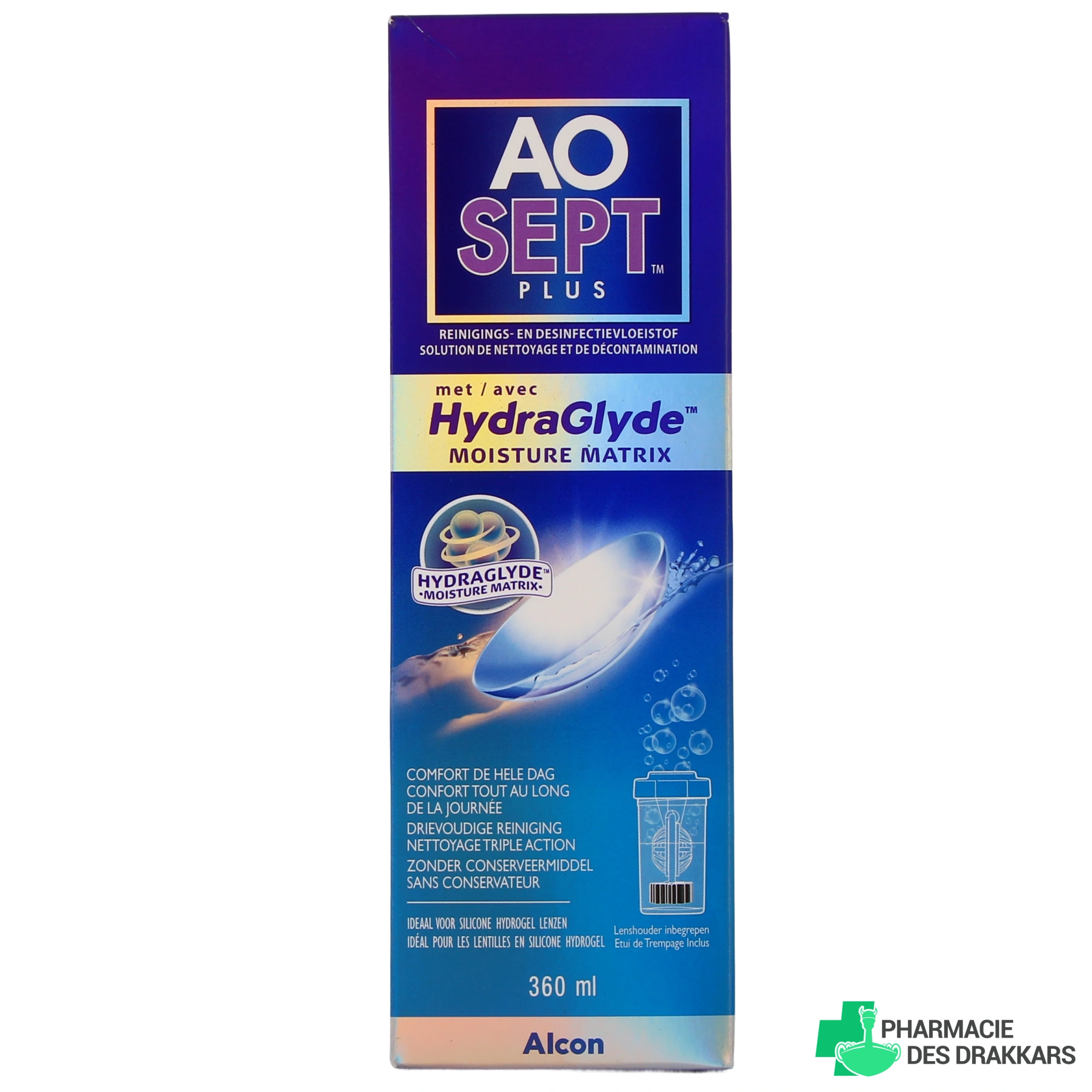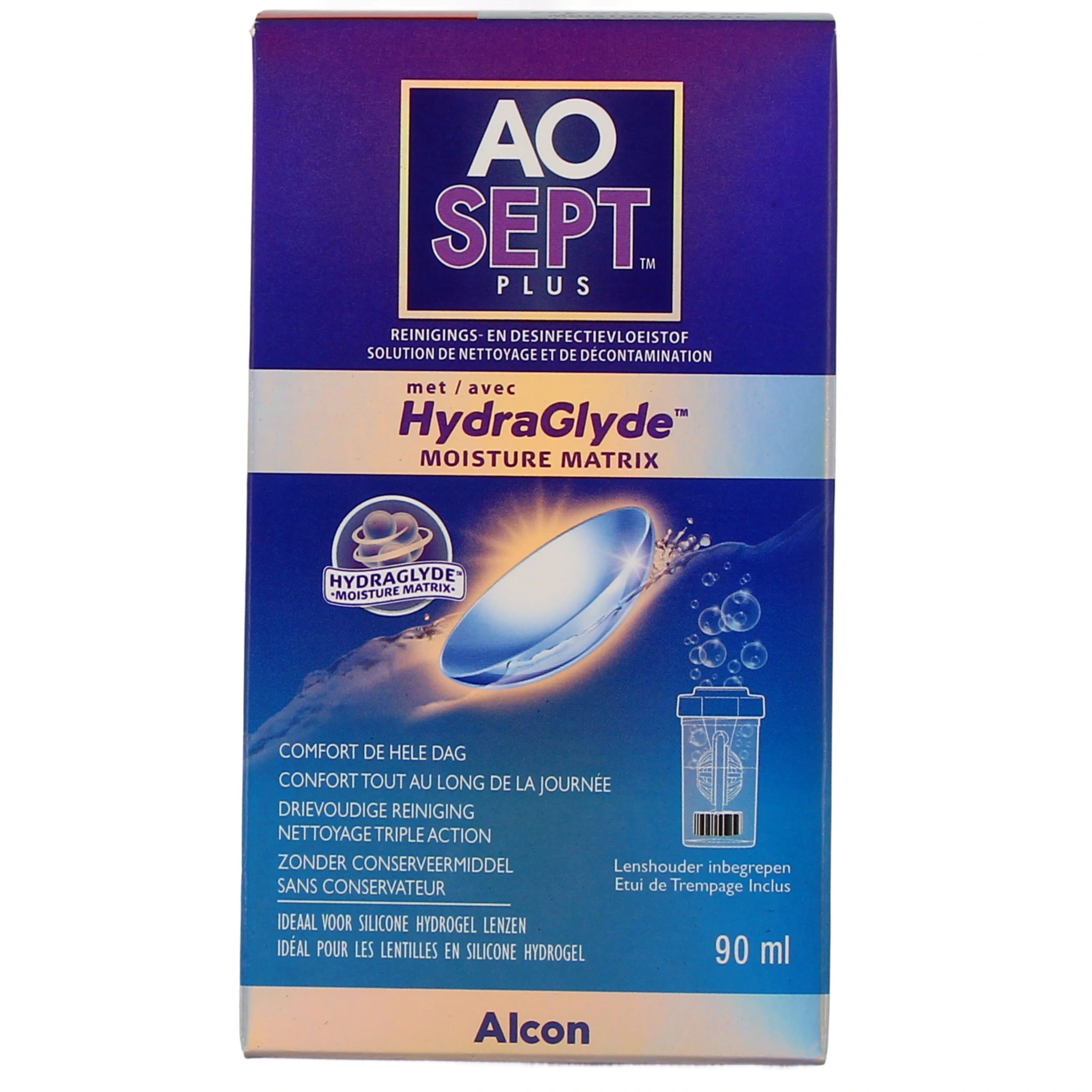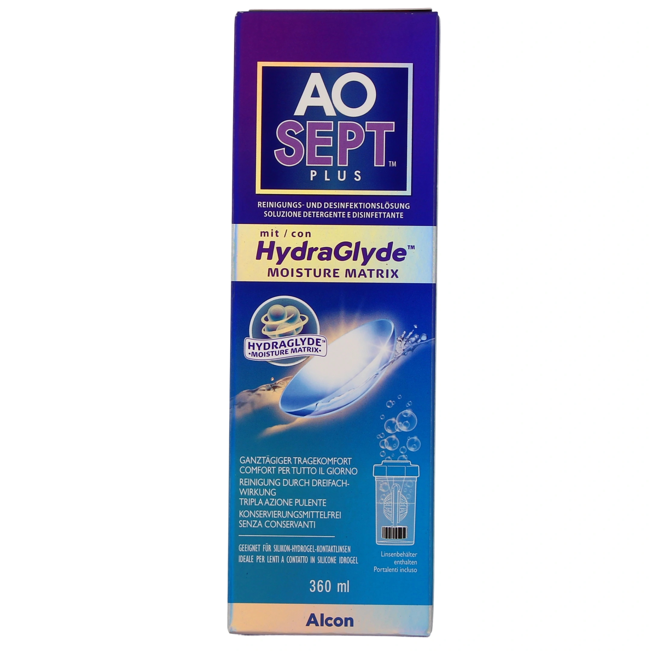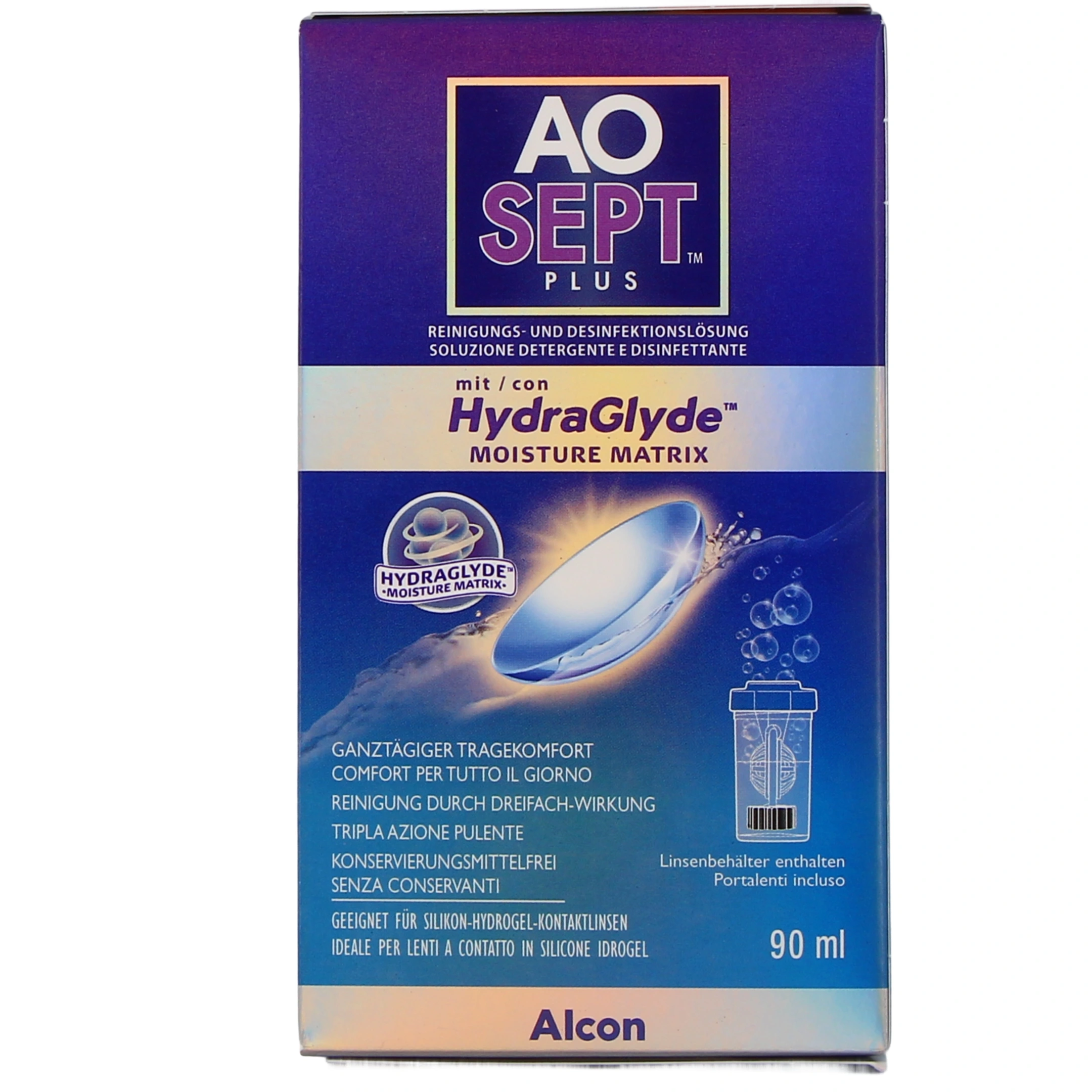 La solution d’entretien pour lentilles de contact Aosept Plus Hydraglyde du laboratoire Alcon est une solution à la fois oxydante, nettoyante et décontaminante, qui s’adresse aussi bien aux porteurs de lentilles souples que rigides.