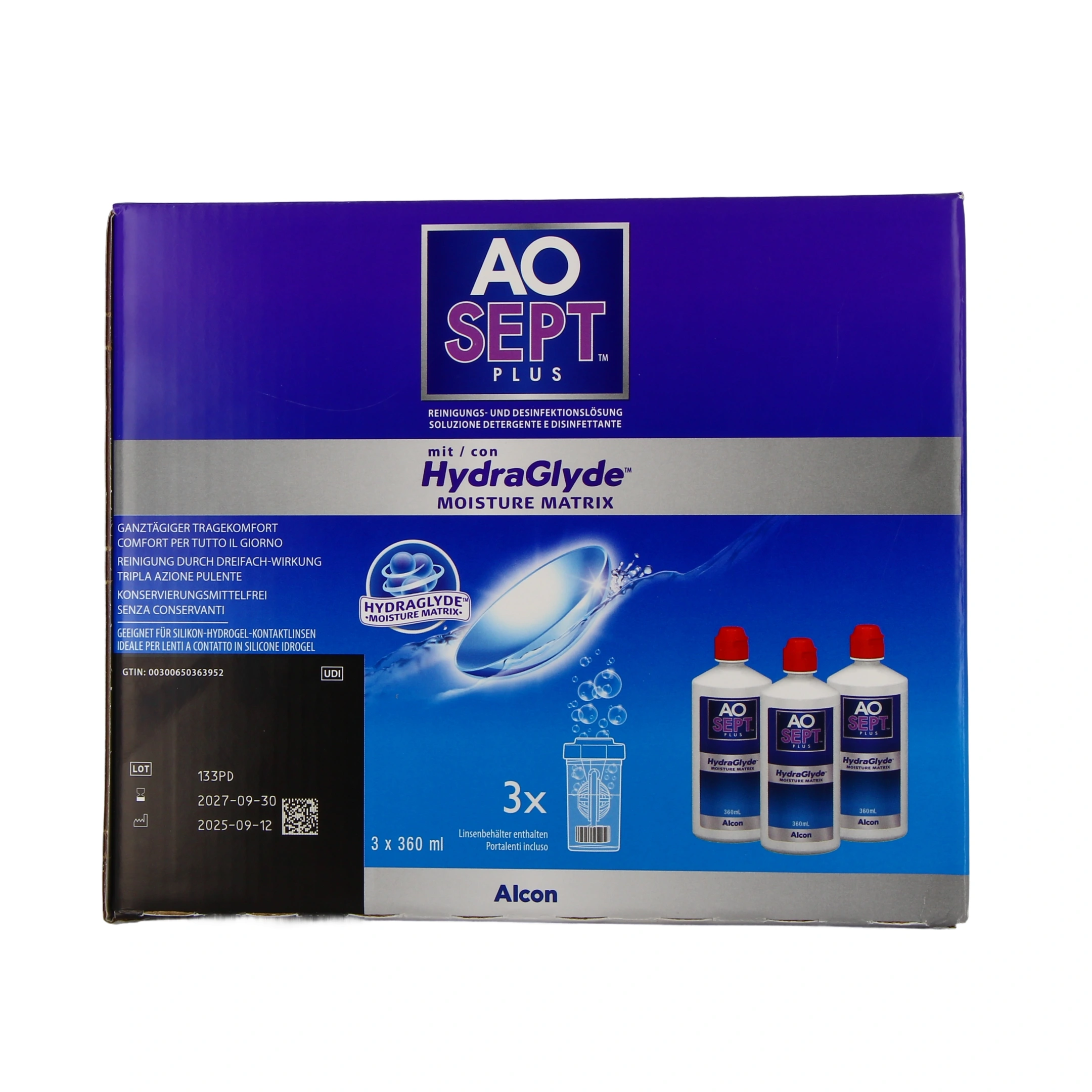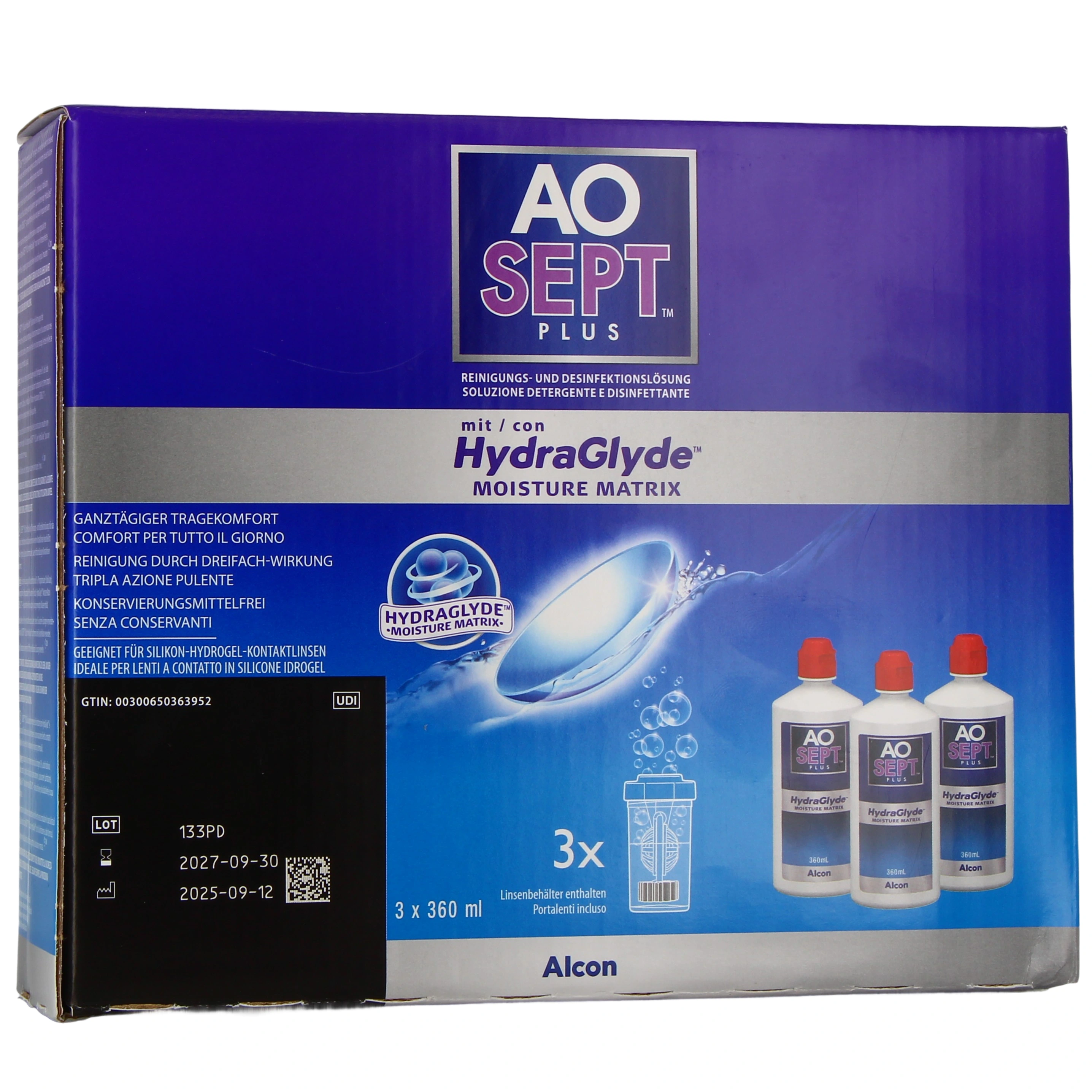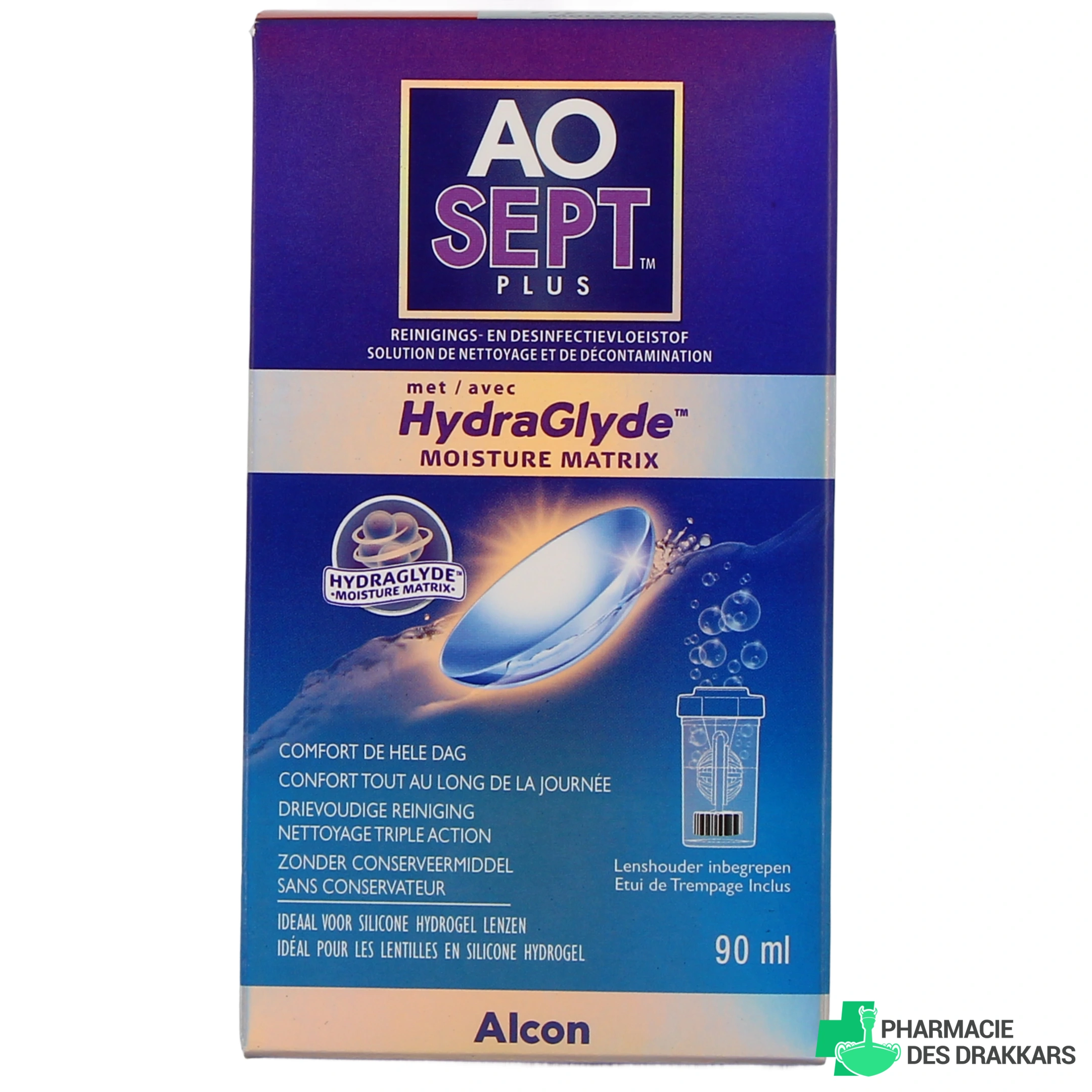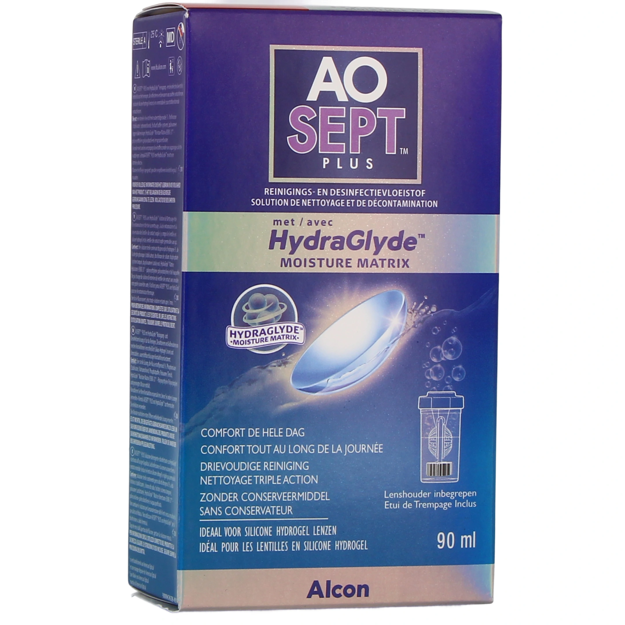 La solution d’entretien pour lentilles de contact Aosept Plus Hydraglyde du laboratoire Alcon est une solution à la fois oxydante, nettoyante et décontaminante, qui s’adresse aussi bien aux porteurs de lentilles souples que rigides.