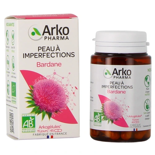 Arkogélules Bardane est un complément alimentaire qui a été développé par Arkopharma, qui contribue à conserver une peau saine, nette et apaisée. La poudre de racine de Bardane est incluse dans des gélules 100% végétales.