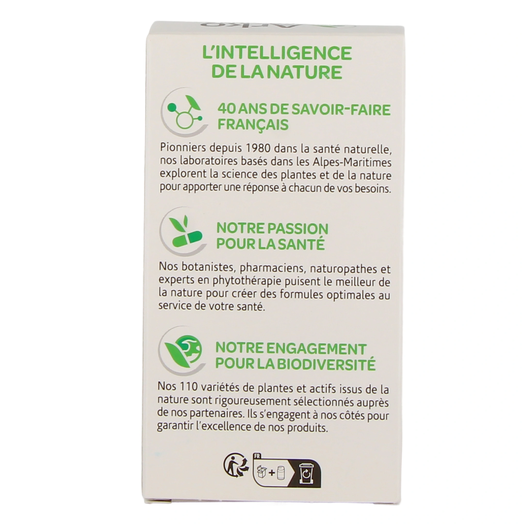 Pionniers depuis 1980 dans la santé naturelle, les laboratoires Arkopharma, basés dans les Alpes-Maritimes, explorent la science des plantes et de la nature pour apporter une réponse à chacun de vos besoins. Des botanistes, pharmaciens, naturopathes et experts en phytothérapie puisent le meilleur de la nature pour créer des formules optimales au service de votre santé. Les 110 variétés de plantes et actifs Arkopharma, issus de la nature, sont rigoureusement sélectionnés auprès de partenaires. Ceux-ci s'engagent aux côtés d'Arkopharma pour garantir l'excellence des produits de la marque.