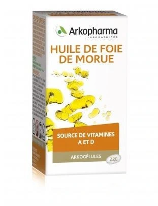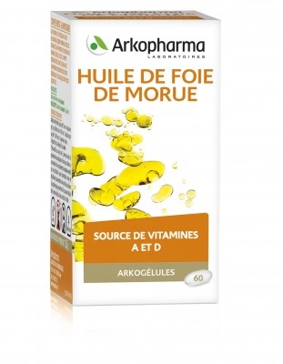 Arkogélules Huile de Foie de Morue est un complément alimentaire source de vitamine A, vitamine D et acides gras essentiels. Il contribue au maintien d'une ossature normale et de bonnes fonctions cérébrales.