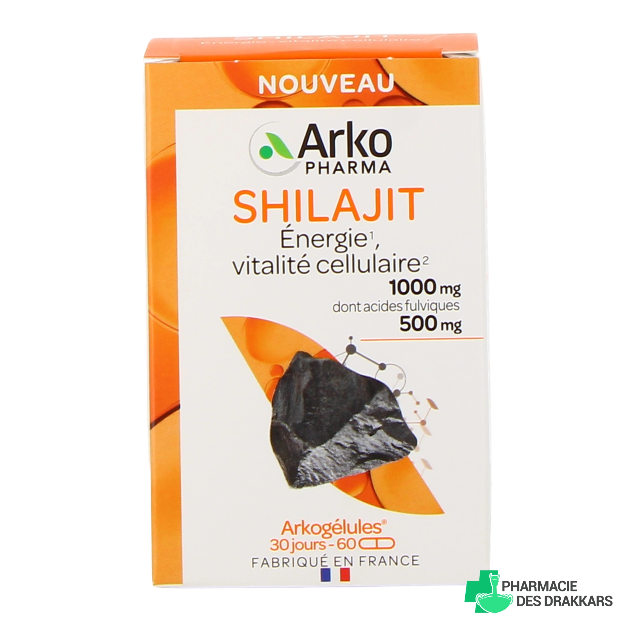 Fabriqué en France par le laboratoire Arkopharma, le complément alimentaire Arkogélules Shilajit vous apporte 1000 mg de shilajit par dose journalière (soit 2 gélules), dont 500 mg d'acides fluviques. Son utilisation est réservée à l'adulte, et déconseillée chez la femme enceinte ou allaitante. La formule des gélules d'Arkogélules Shilajit est vegan. Pionniers depuis 1980 dans la santé naturelle, les laboratoires Arkopharma basés en France dans les Alpes-Maritimes explorent la science des plantes et de la nature pour apporter une réponse à chacun de vos besoins.