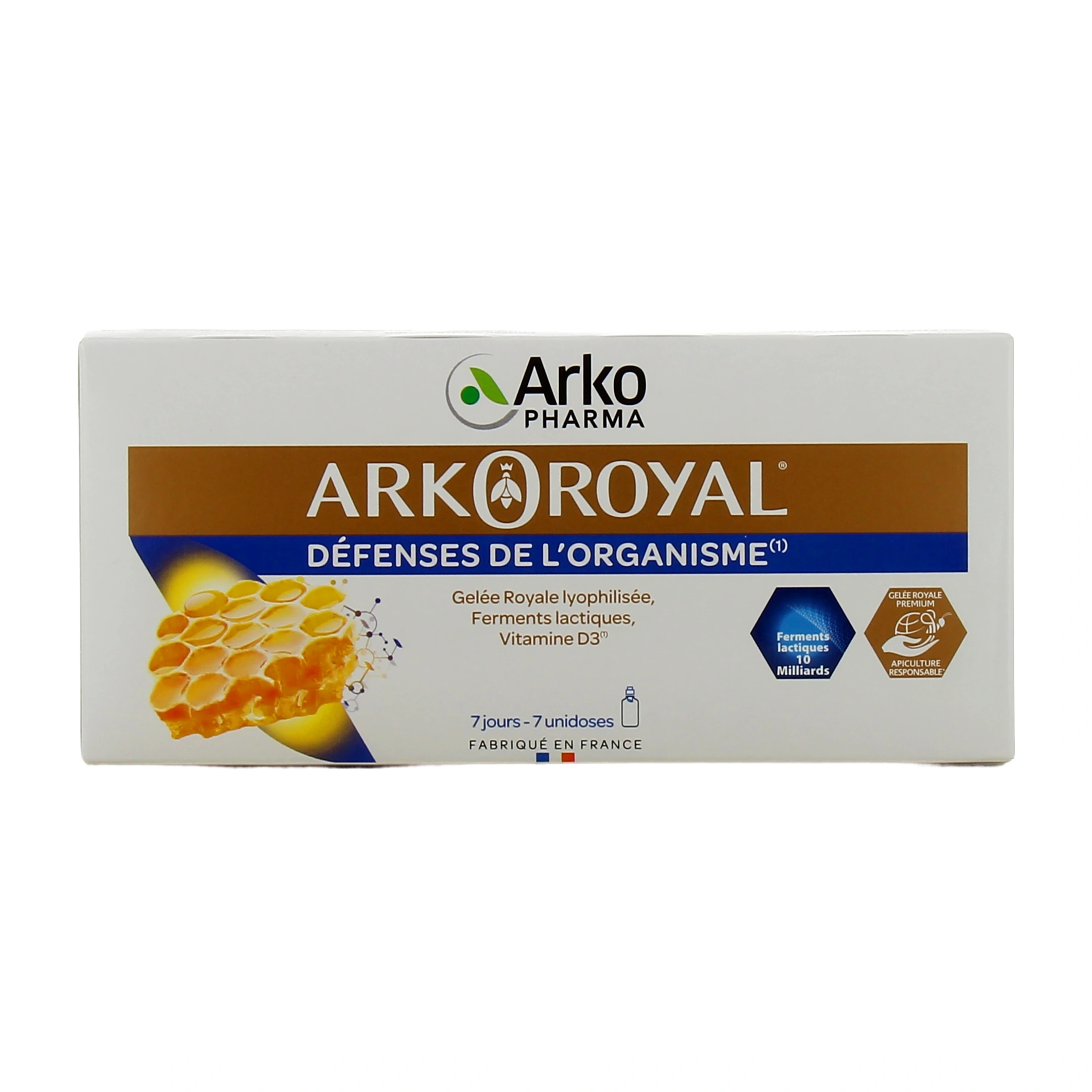 Élaboré à partir de gelée royale lyophilisée, de ferments lactiques et de vitamine D3, Arkoroyal défense de l'organisme adultes est un complément alimentaire conseillé pendant l'hiver ainsi que pendant les changements de saison.