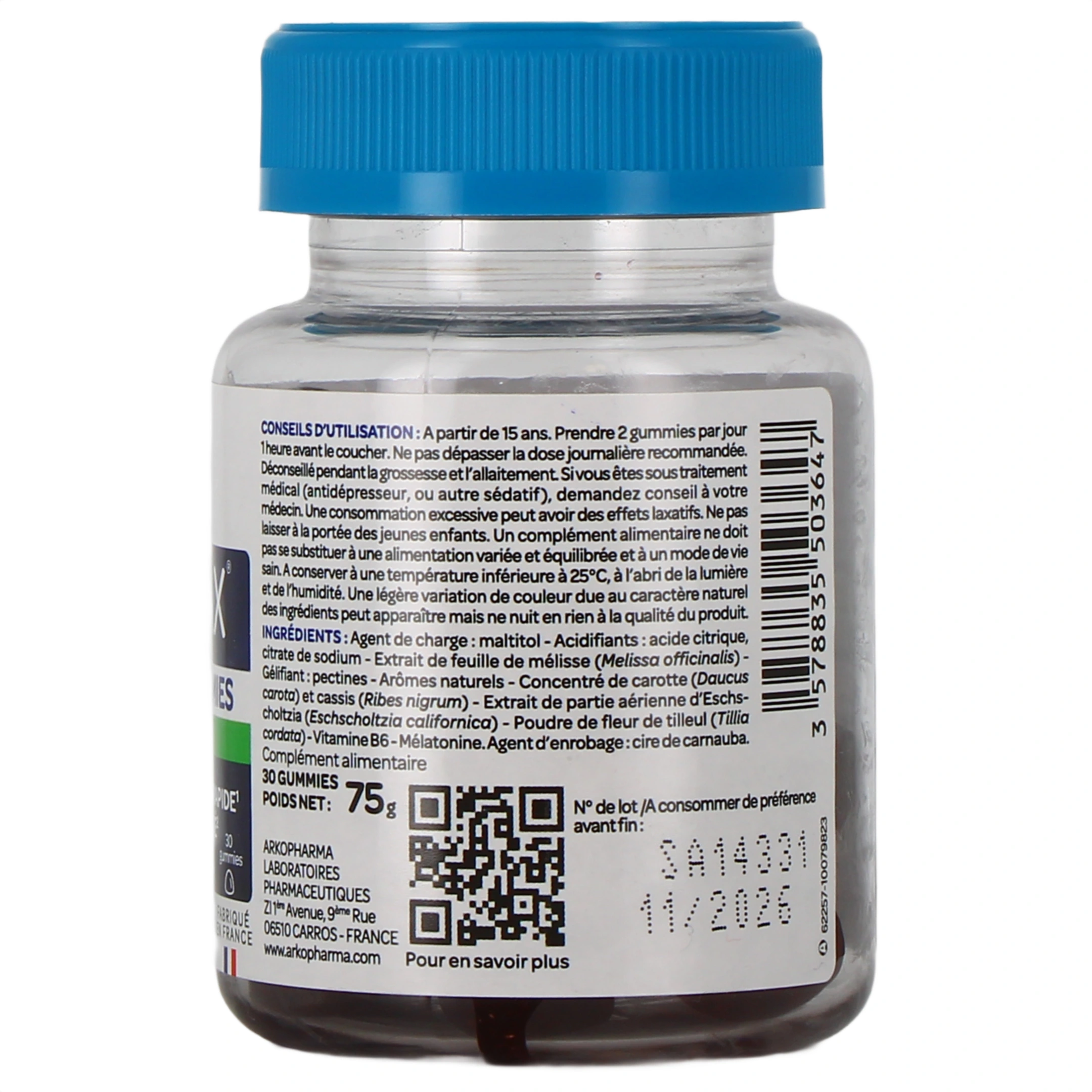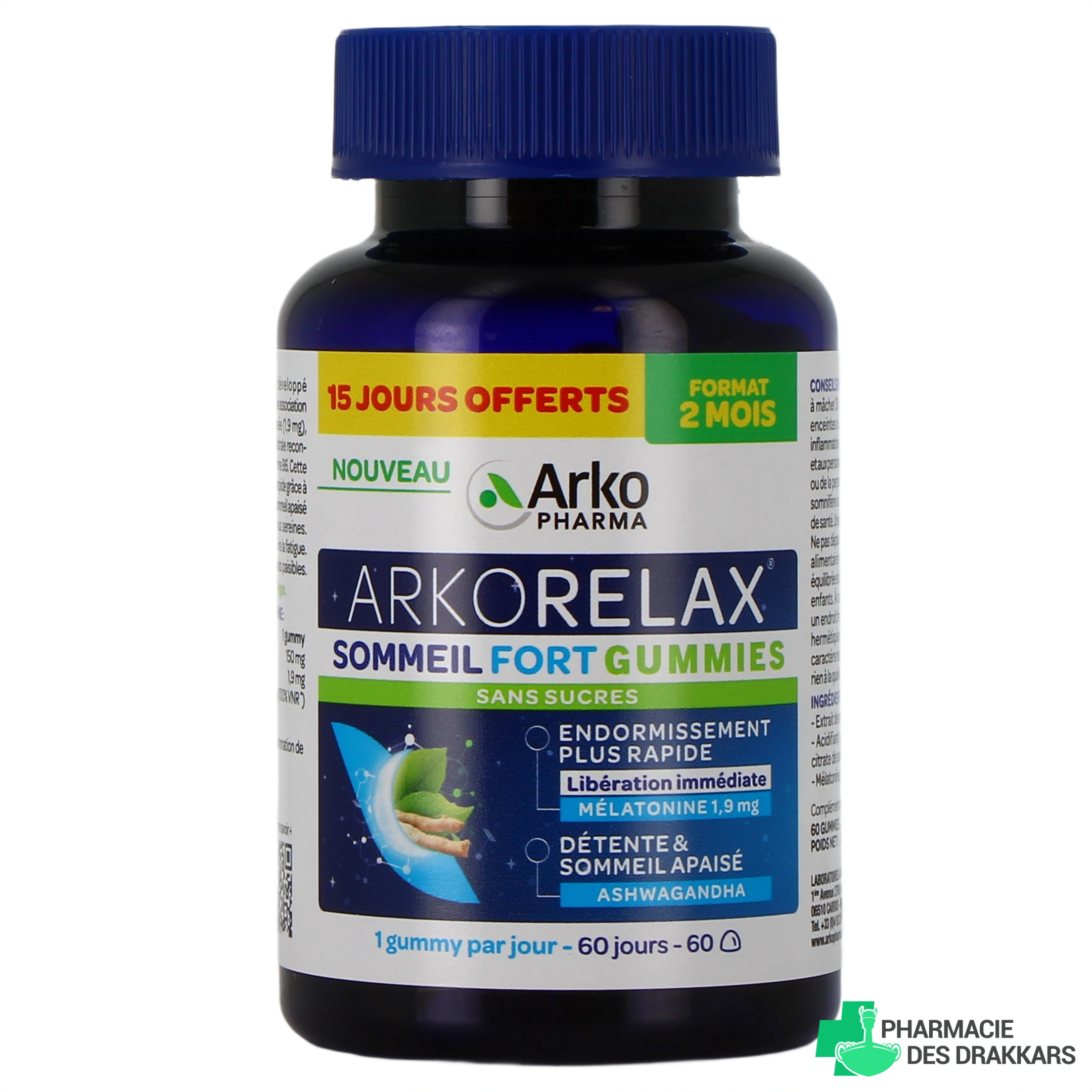 - Arkorelax Sommeil Fort : Prenez 1 gummy par jour, 30 minutes avant le coucher.