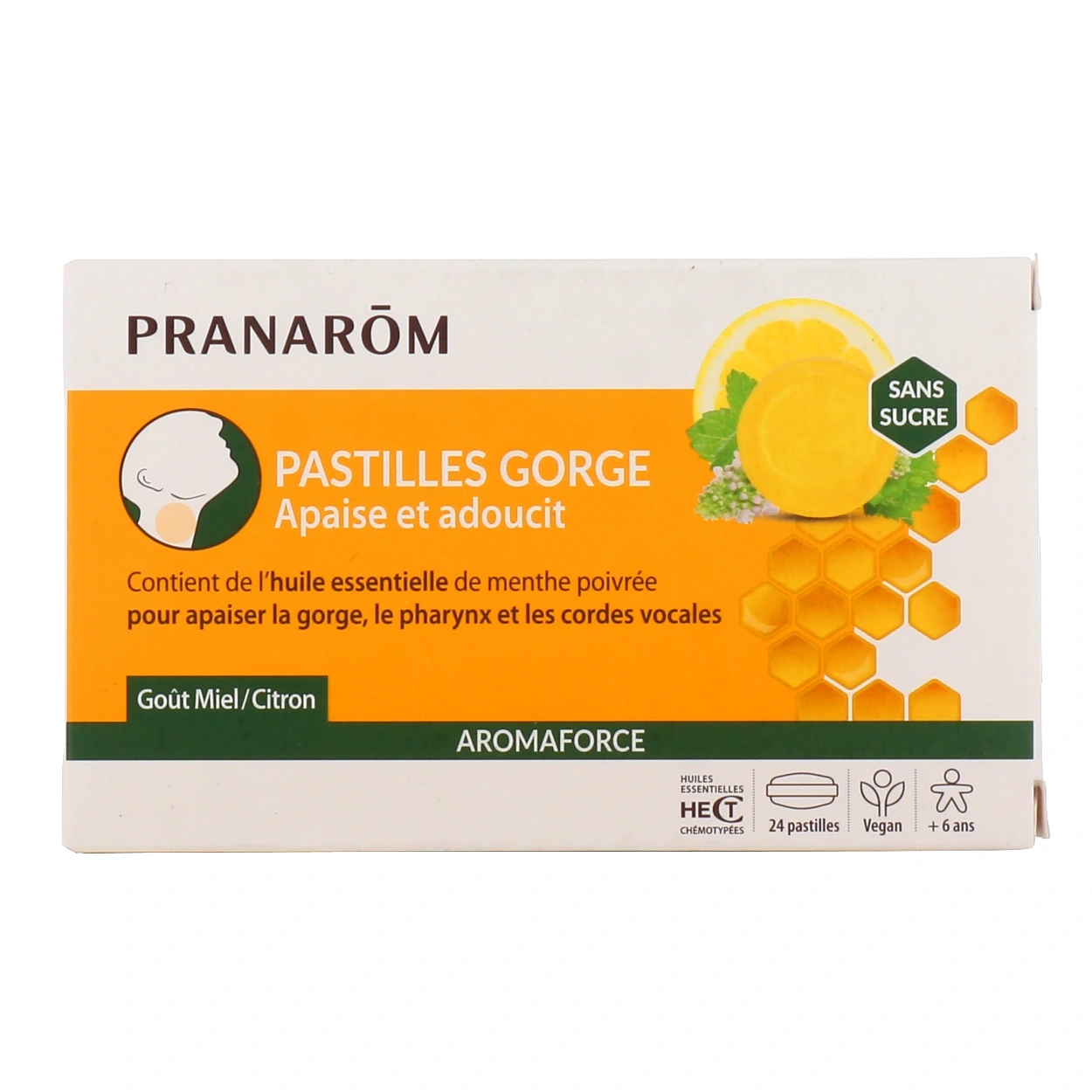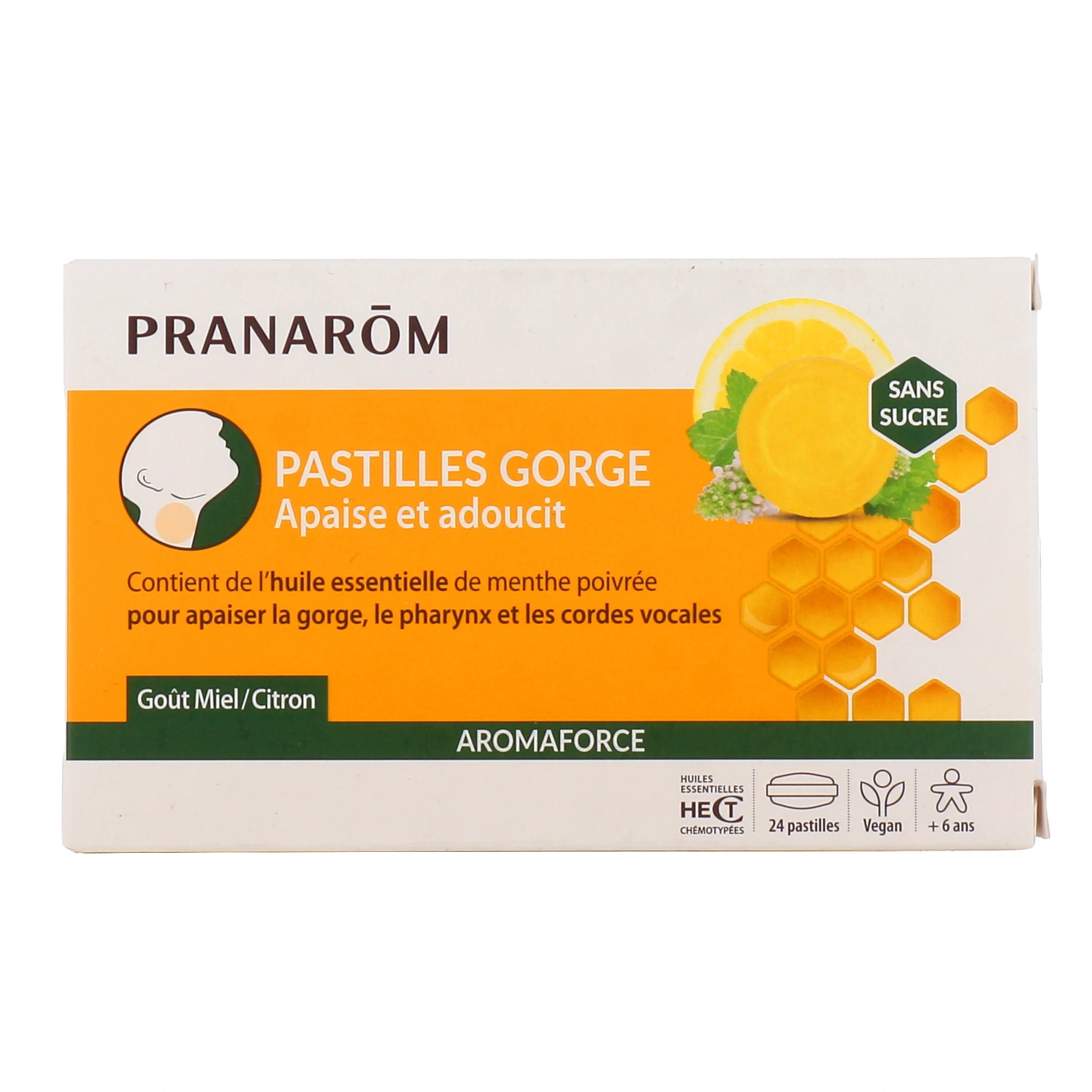 Les pastilles Gorge Apaise et Adoucit Aromaforce de Pranarom sont composées d'huiles essentielles qui permettent d'adoucir et apaiser la gorge.