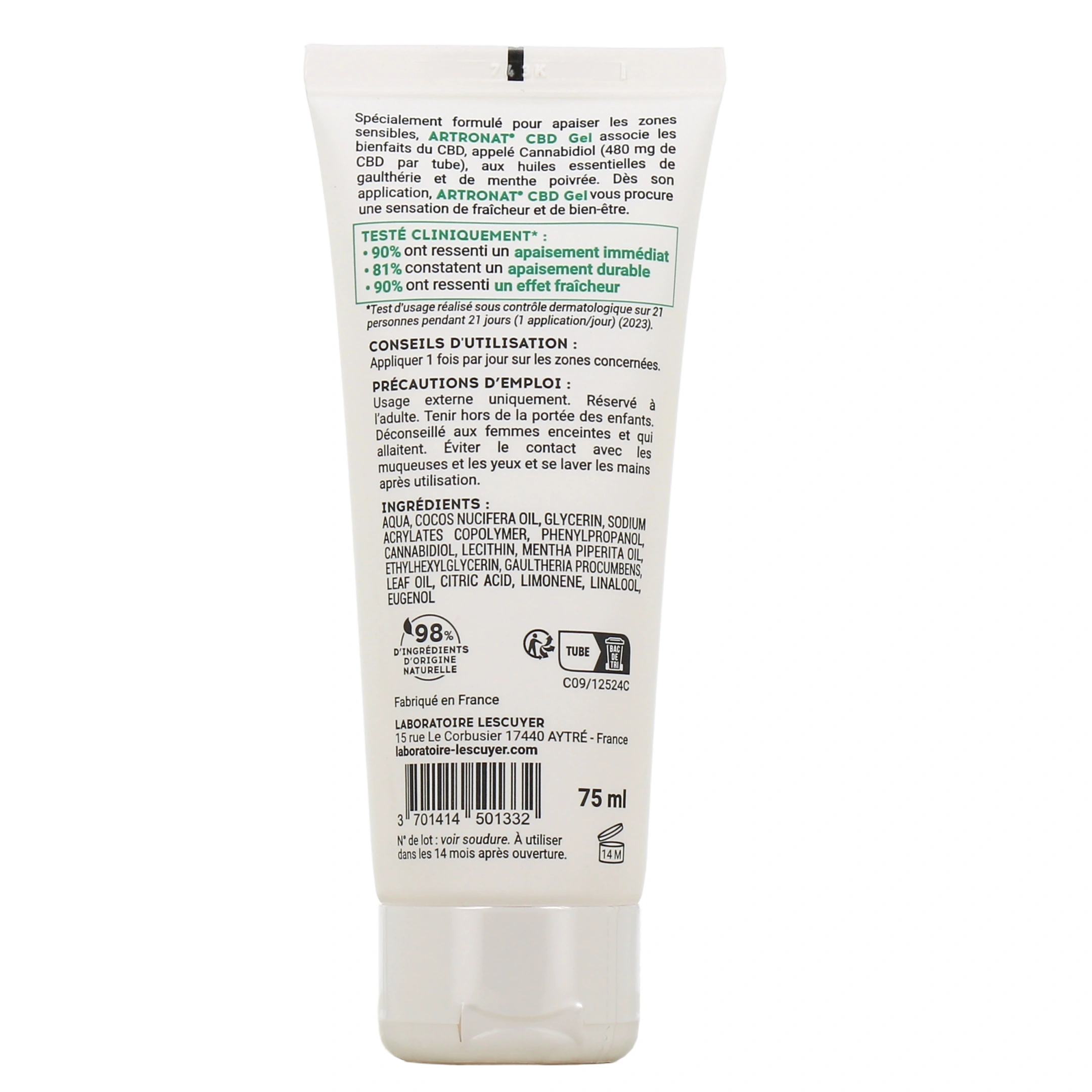 Présentation proposée pour Lescuyer Artronat CBD Gel sur la pharmacie en ligne des Drakkars : tube de 75 ml.