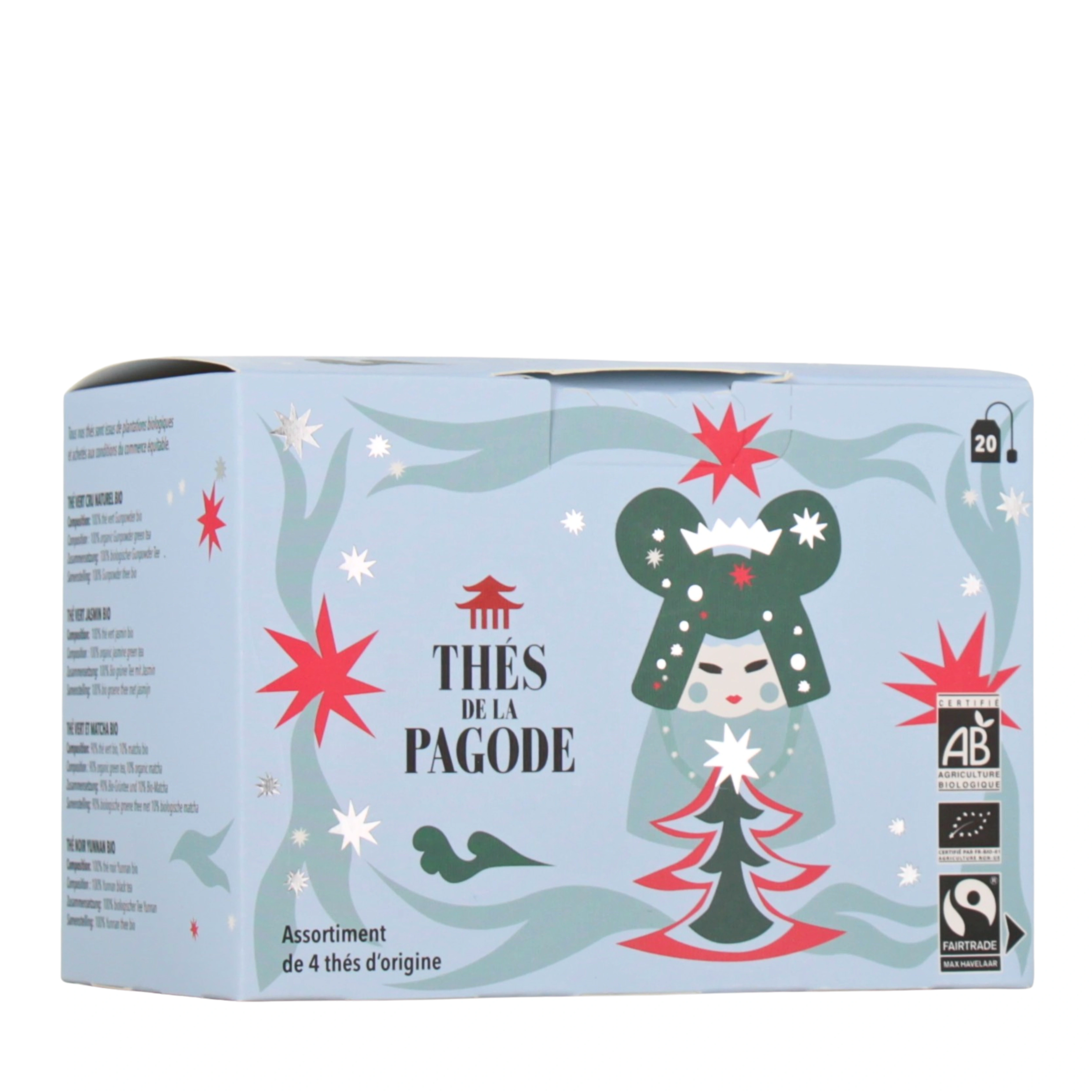Cadeau idéal pour noël, à offrir ou à s’offrir pour savourer la magie des fêtes, l'assortiment de thés des Thés de la Pagode est un coffret de dégustation qui propose 4 thés certifiés, cultivés en altitude, issus de ferme d’exception et du commerce équitable, à savourer durant la saison hivernale.