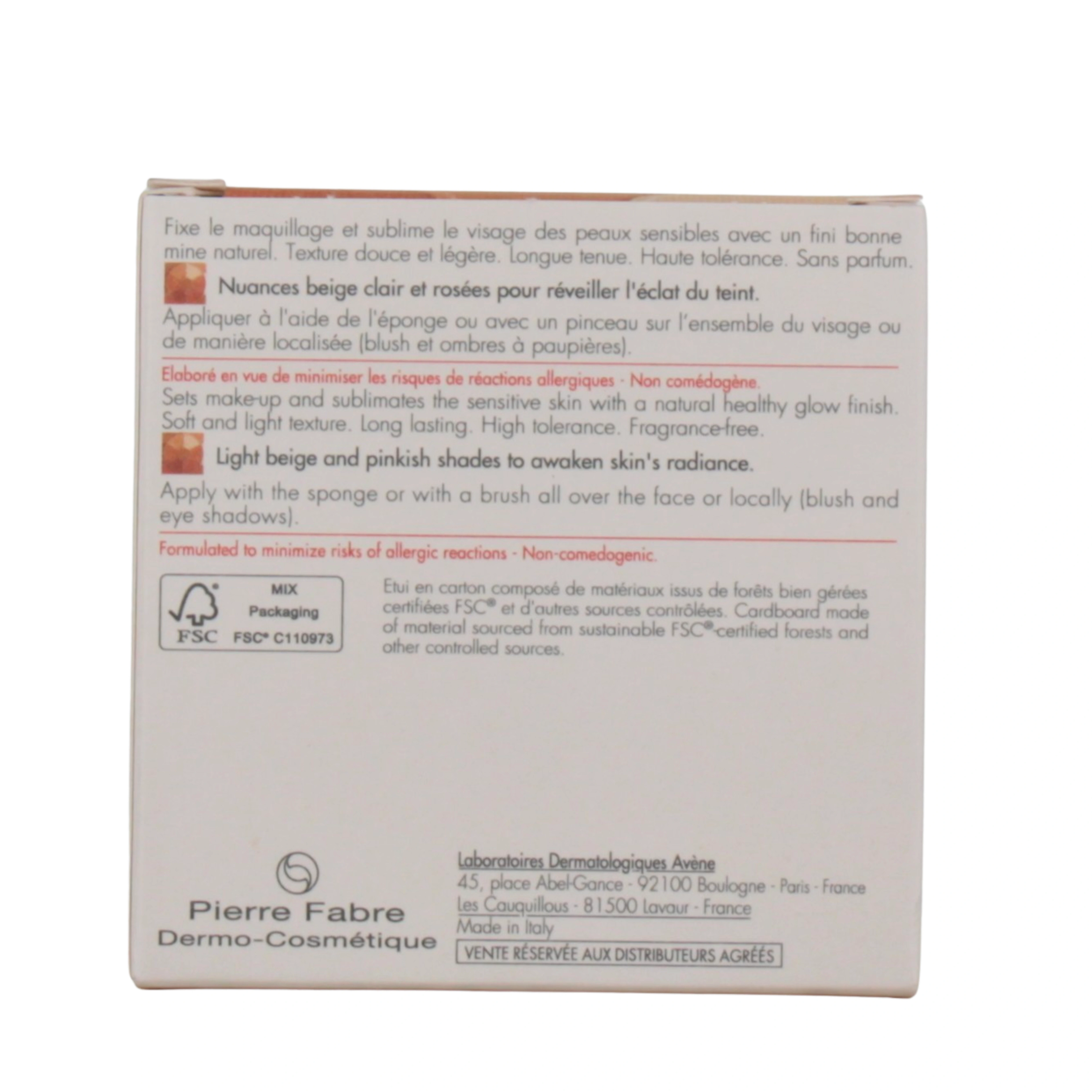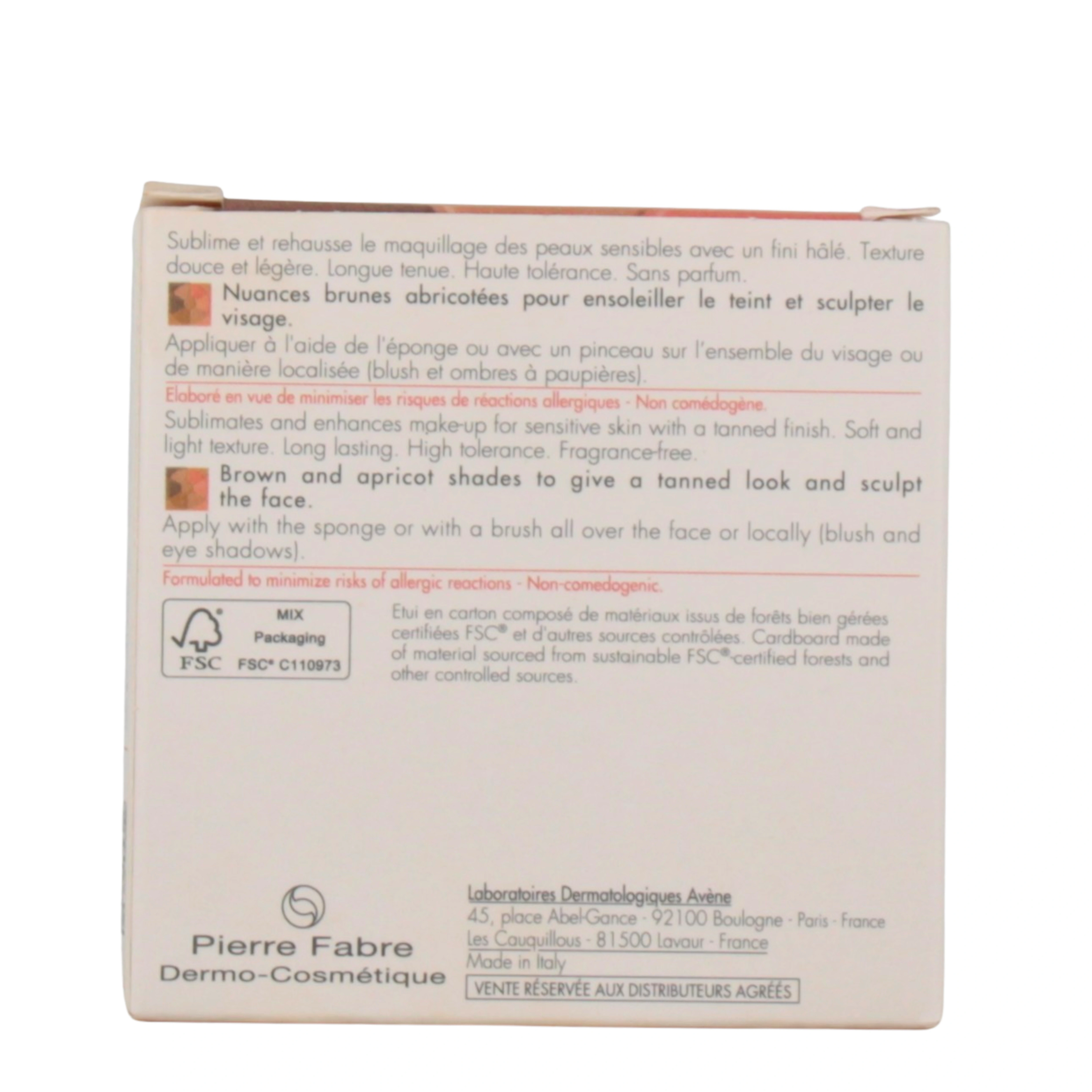 - Poudre mosaïque Avène Couvrance Soleil : pour des nuances dorées et brunes, idéal comme fixateur de maquillage pour les peaux mates, ou pour réchauffer votre teint clair.