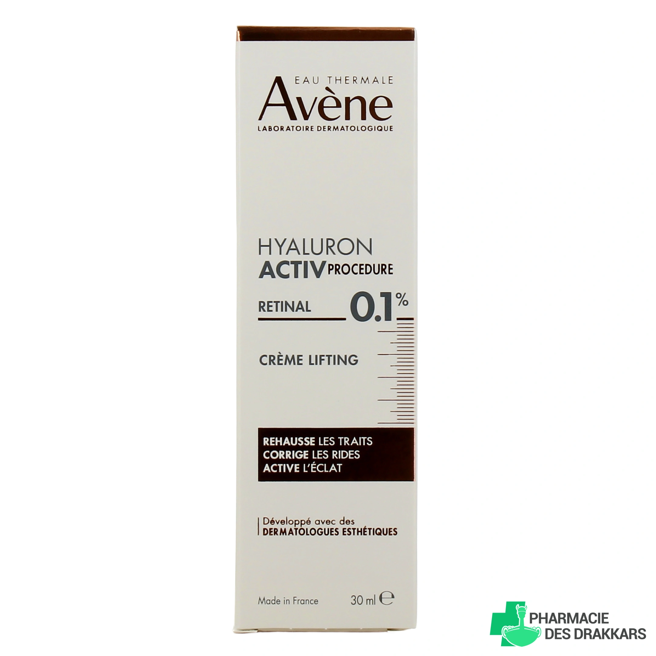 Véritable soin anti-âge complet et efficace, la crème Avène Hyaluron Activ Procedure est une crème liftante qui associe du rétinal, du niacinamide et de l'acide hyaluronique pour combattre les rides ainsi que la perte de fermeté et d'éclat. Constituée de 97% d'ingrédients d'origine naturelle, cette crème anti-âge Avène apporte un effet lifting immédiat aux contours du visage pour une peau paraissant visiblement plus jeune. Ses propriétés peuvent également être intéressantes pour améliorer et maintenir les résultats de procédures esthétiques.