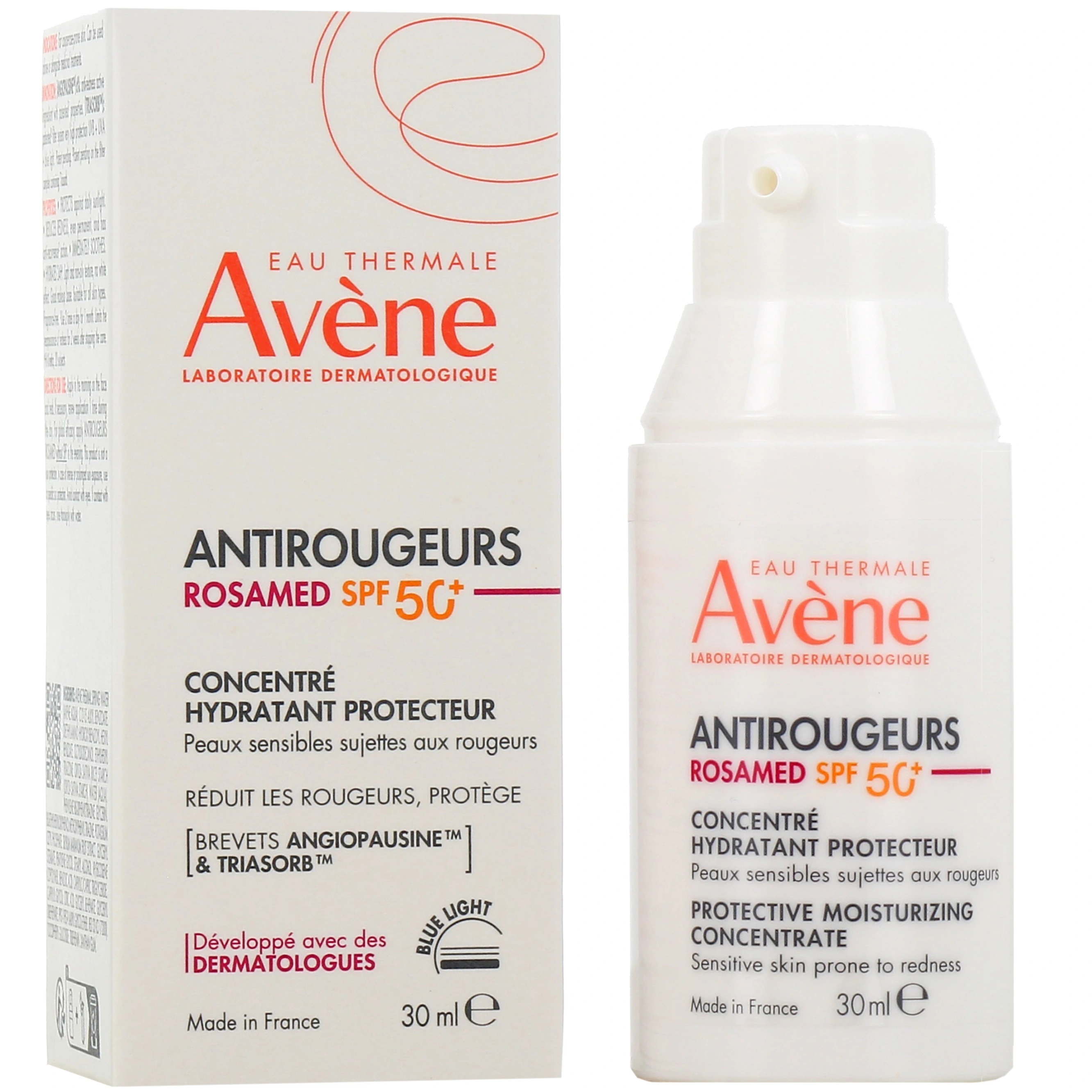Conçu avec des actifs apaisants, le soin antirougeurs Rosamed SPF50+ d'Avène contient de l'Angiopausine™ issu du chardon-marie, dosé à 6%, qui réduit l'apparence des petits vaisseaux cutanés et un filtre solaire breveté qui confère à la peau une très haute protection contre les UV. Ces actifs sont complétés par l'eau thermale Avène pour apaiser immédiatement les sensations d'échauffement et d'inconfort associées aux rougeurs. On retrouve également dans la formule de la glycérine, choisie pour ses propriétés humectantes.