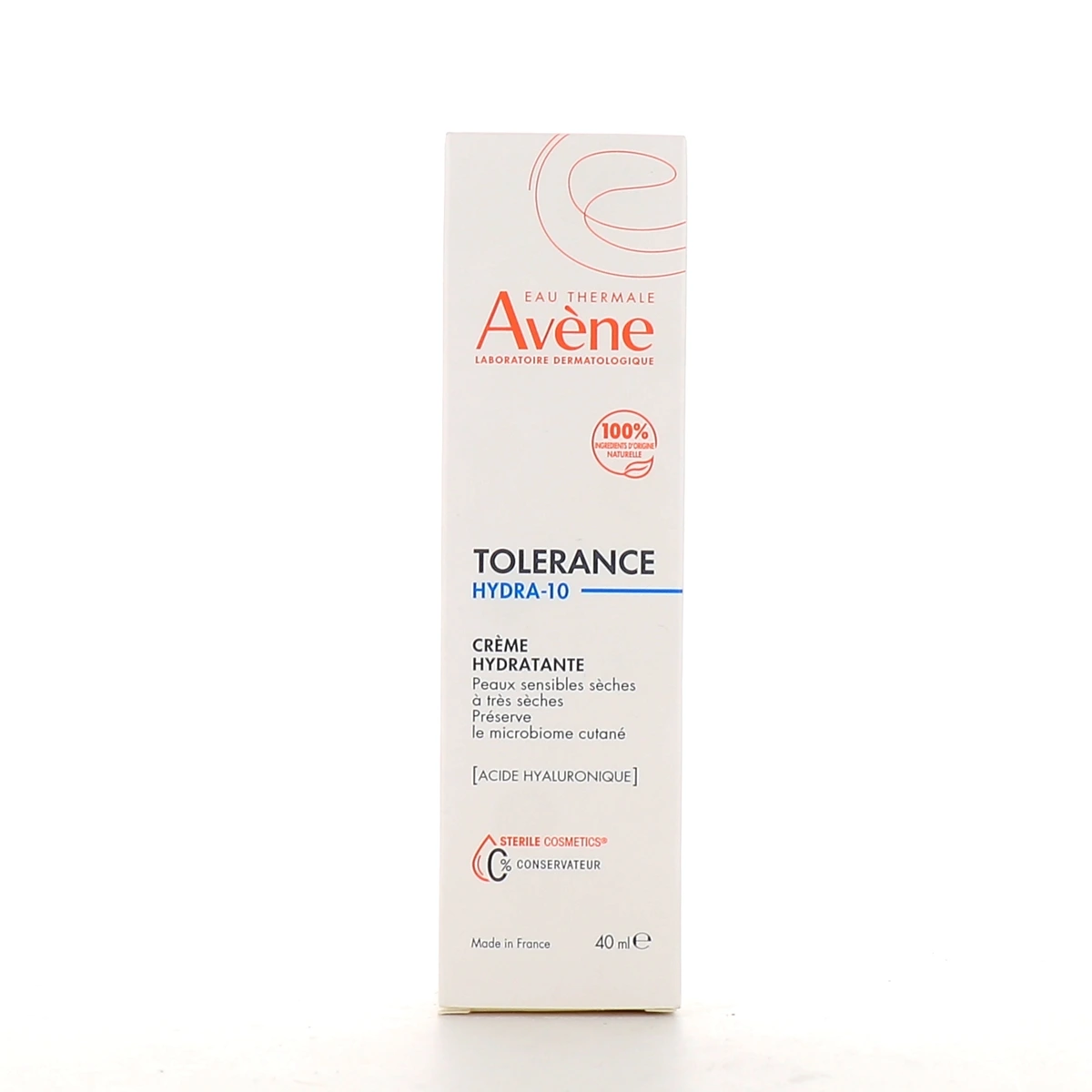 Présentation disponible pour la crème hydratante Avène Tolérance Hydra-10 sur notre pharmacie en ligne : Tube-pompe stérile de 40 ml