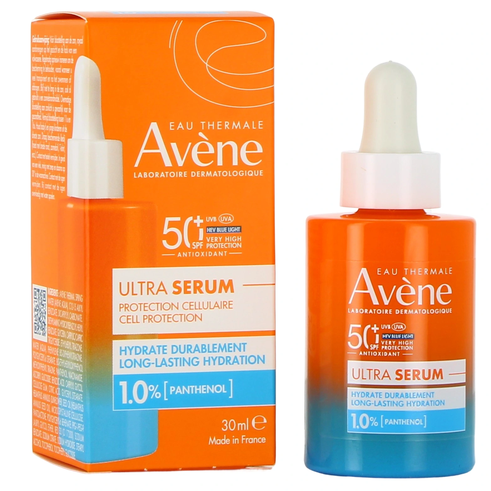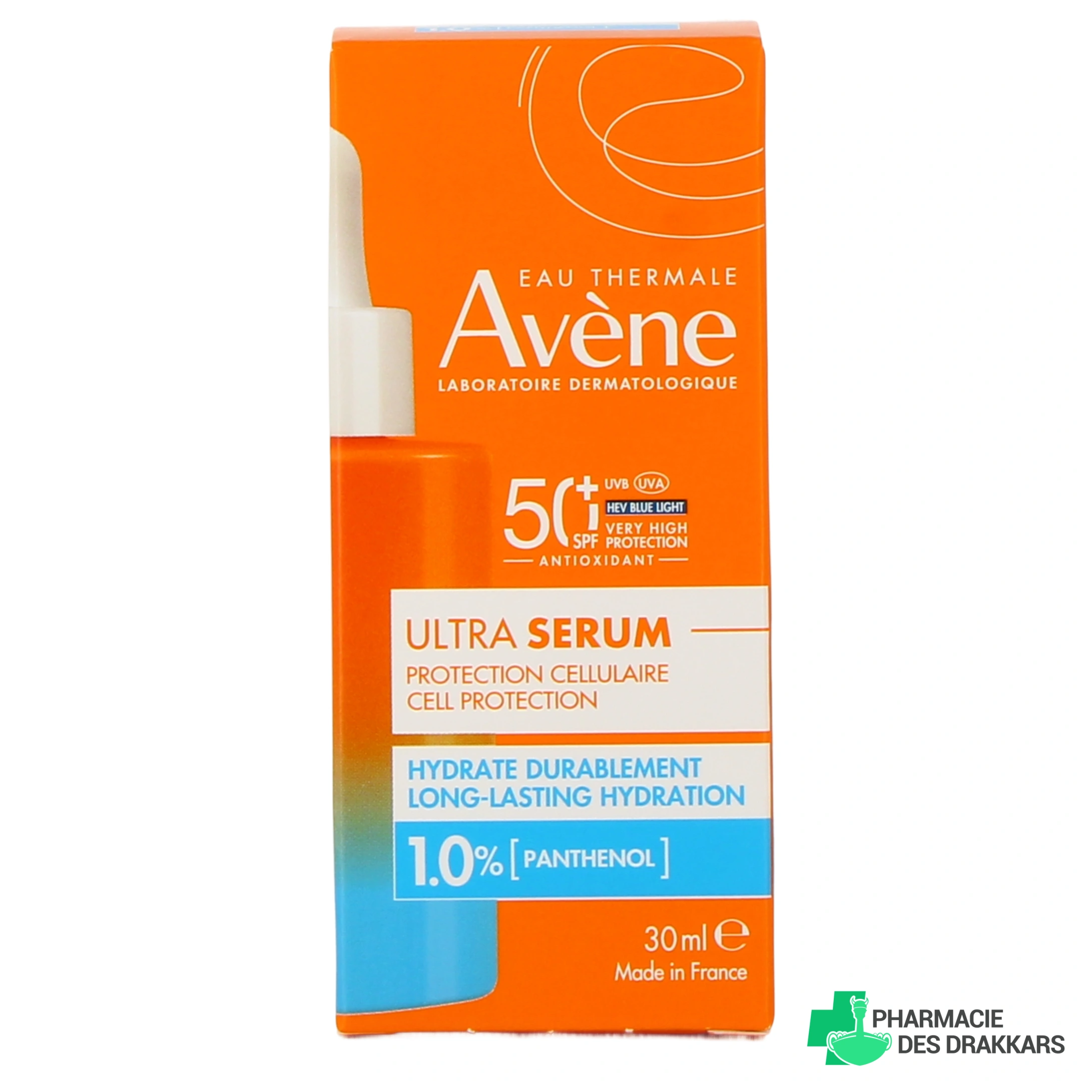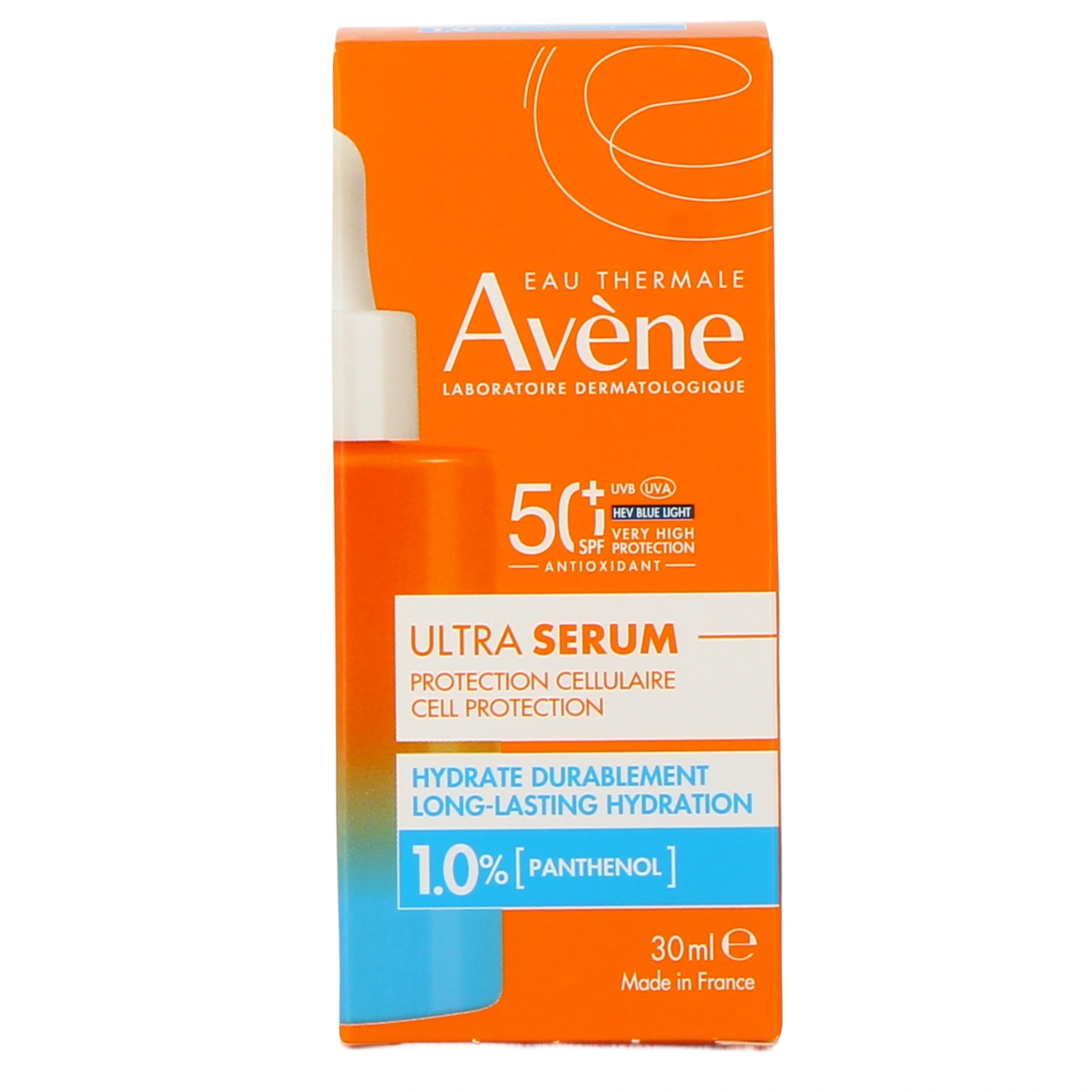 Présentation disponible sur notre pharmacie en ligne pour Avène Ultra Sérum Hydratant SPF 50+ : flacon-pipette de 30 ml.