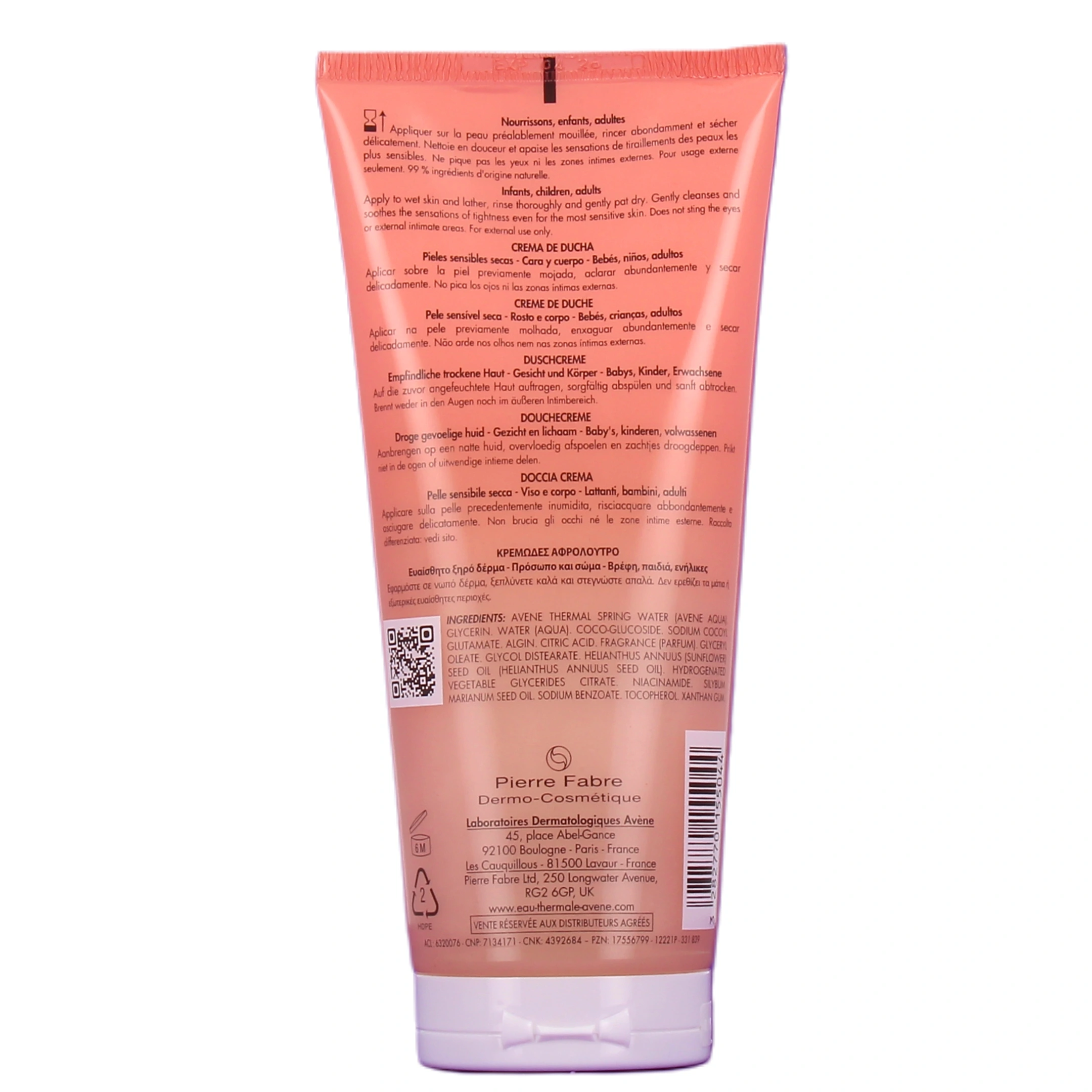 Présentations disponibles pour la crème de douche Avène XeraCalm Nutrition sur notre pharmacie en ligne : Tube de 200 ml et flacon-pompe de 500 ml