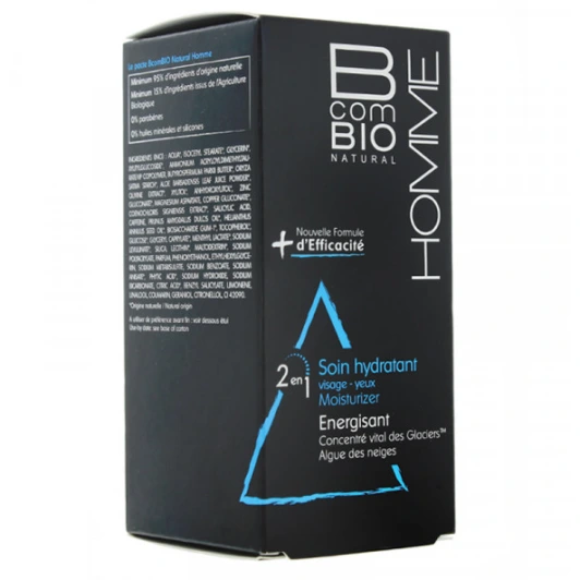 Le soin hydratant pour Homme B Com Bio est un soin 2 en 1 spécialement formulé pour hydrater le visage et le contour des yeux de l'homme. Utilisé au quotidien, il contribue à estomper les marques de fatigue telles que les cernes et les poches pour un regard visiblement plus lumineux.