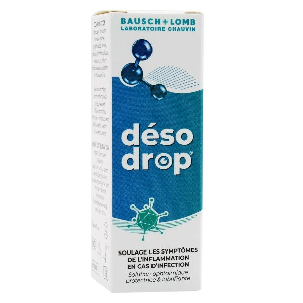Développé par Bausch & Lomb, Desodrop est une solution ophtalmique aux propriétés protectrices, lubrifiantes et apaisantes pour la surface oculaire, et qui permet notamment de soulager les symptômes de l'inflammation en cas d'infection.