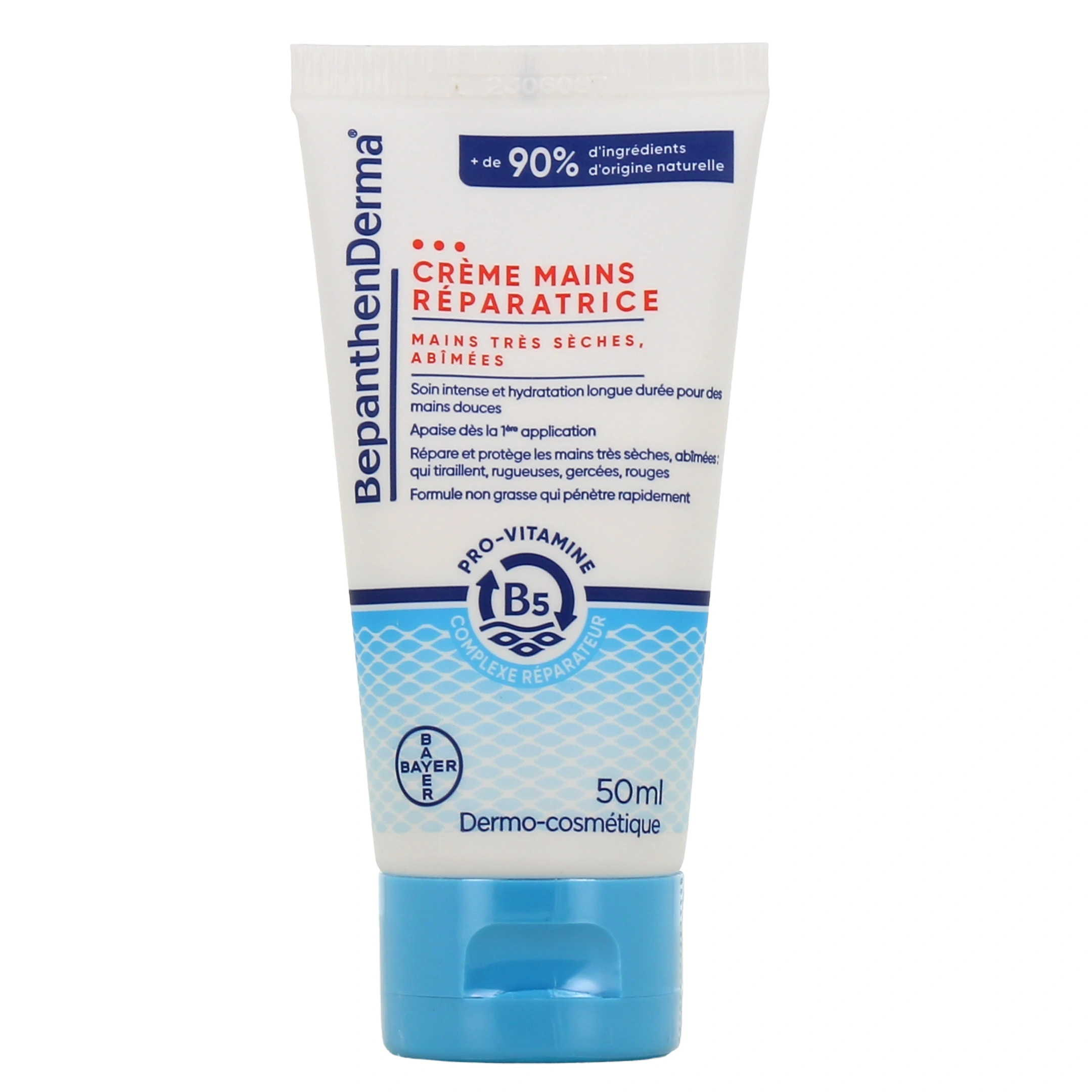 Présentation disponible pour la crème mains réparatrice BepanthenDerma sur notre pharmacie en ligne : Tube de 50 ml