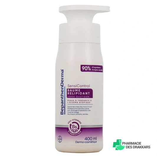 Le baume relipidant SensiControl est un soin quotidien issu de la gamme BepanthenDerma. Il s'adresse aux personnes dont la peau présente une tendance à l'eczéma atopique.