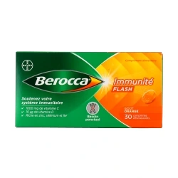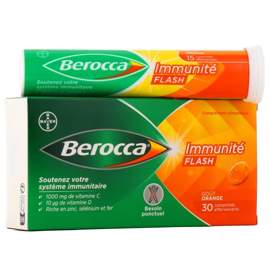 Le produit Immunité Flash de la gamme Berocca est une formule dédiée au soutien de votre système immunitaire. Elle réunit en 1 seul comprimé les éléments essentiels pour aider votre organisme à faire face aux aléas du quotidien.