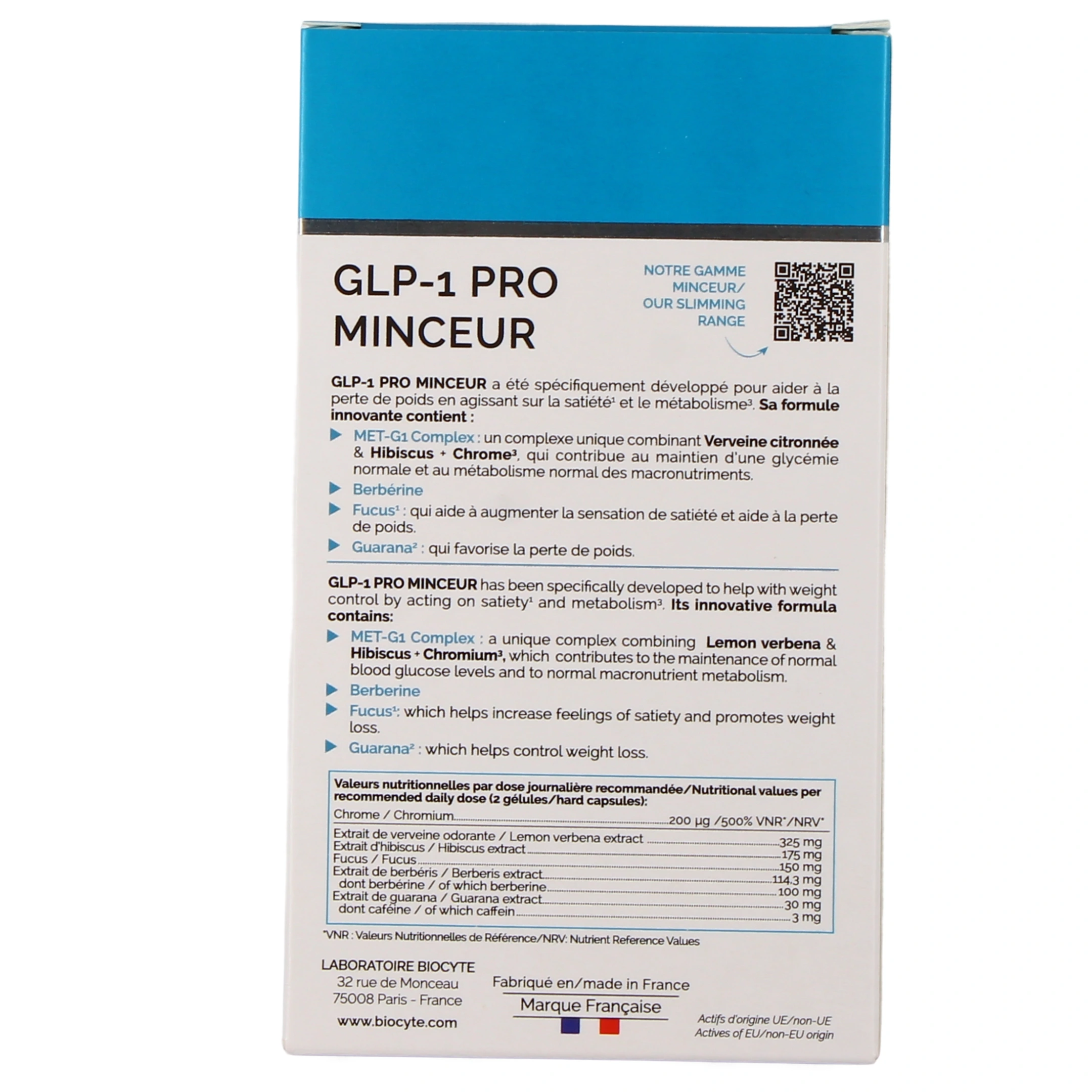 Ce produit est un complément alimentaire et ne se substitue pas à un médicament ni à une alimentation variée et équilibrée. Déconseillé aux femmes enceintes ou allaitantes. En cas de traitement médicamenteux, notamment pour le diabète ou la thyroïde, demandez l'avis d'un professionnel de santé avant utilisation. Tenir hors de portée des enfants.Questions fréquentes sur Biocyte GLP 1 Pro Minceur