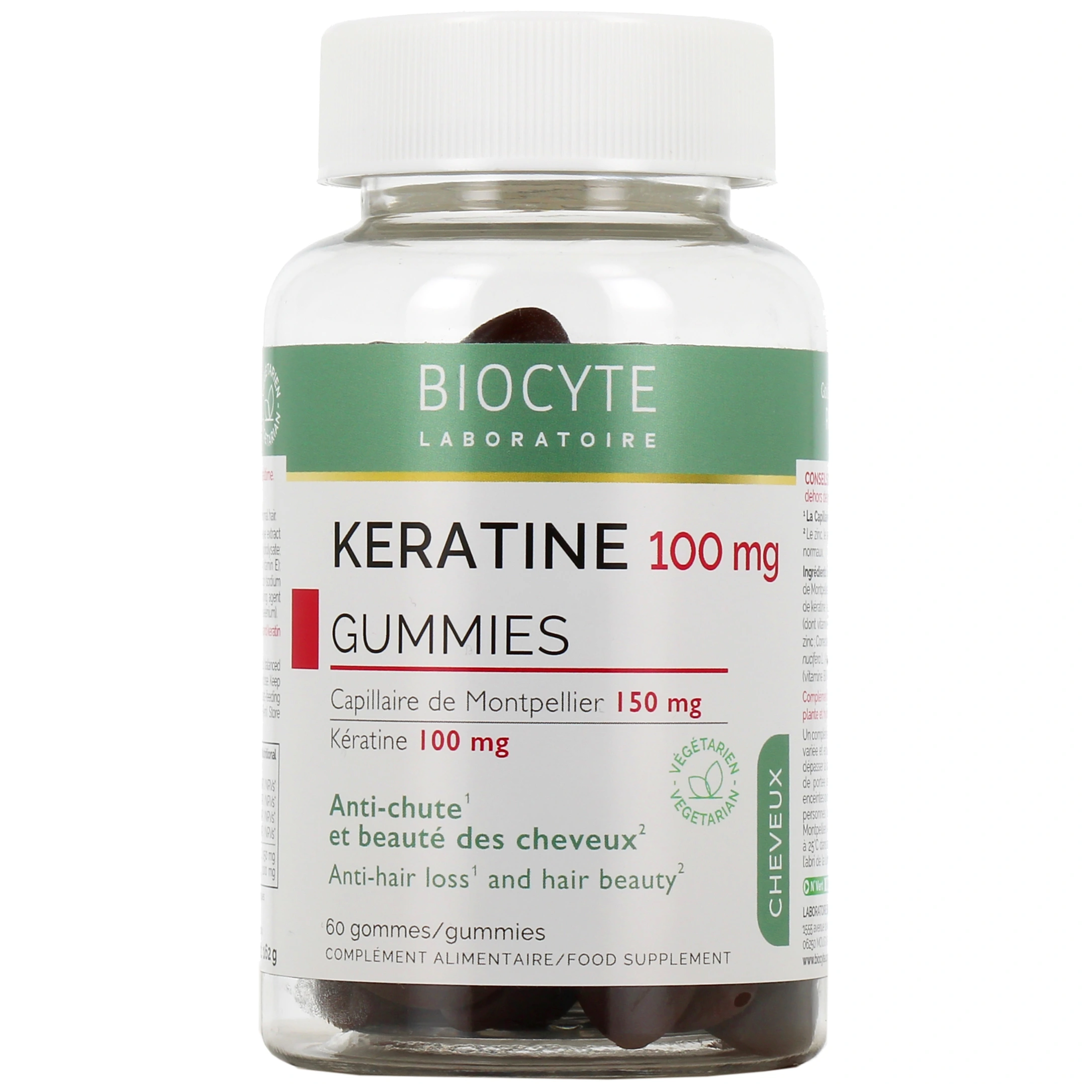 Présentation disponible pour Biocyte Kératine 100 mg : flacon de 60 gummies pour 1 mois.