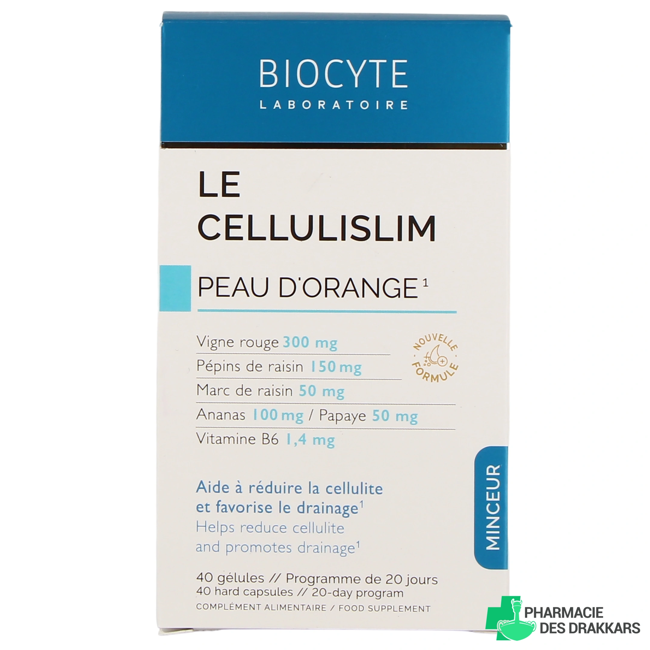 Présentation proposée sur notre pharmacie en ligne pour Biocyte Le Cellulislim Peau d'Orange : Boîte de 40 gélules.