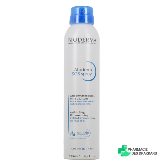 Le spray SOS Atoderm est une véritable innovation des Laboratoires Bioderma. Il s'agit d'un soin anti-démangeaisons ultra-apaisant pour les peaux sensibles, irritées, sèches à très sèches présentant des démangeaisons régulières ou passagères. Il soulage et apaise également les démangeaisons liées aux piqûres de moustiques.