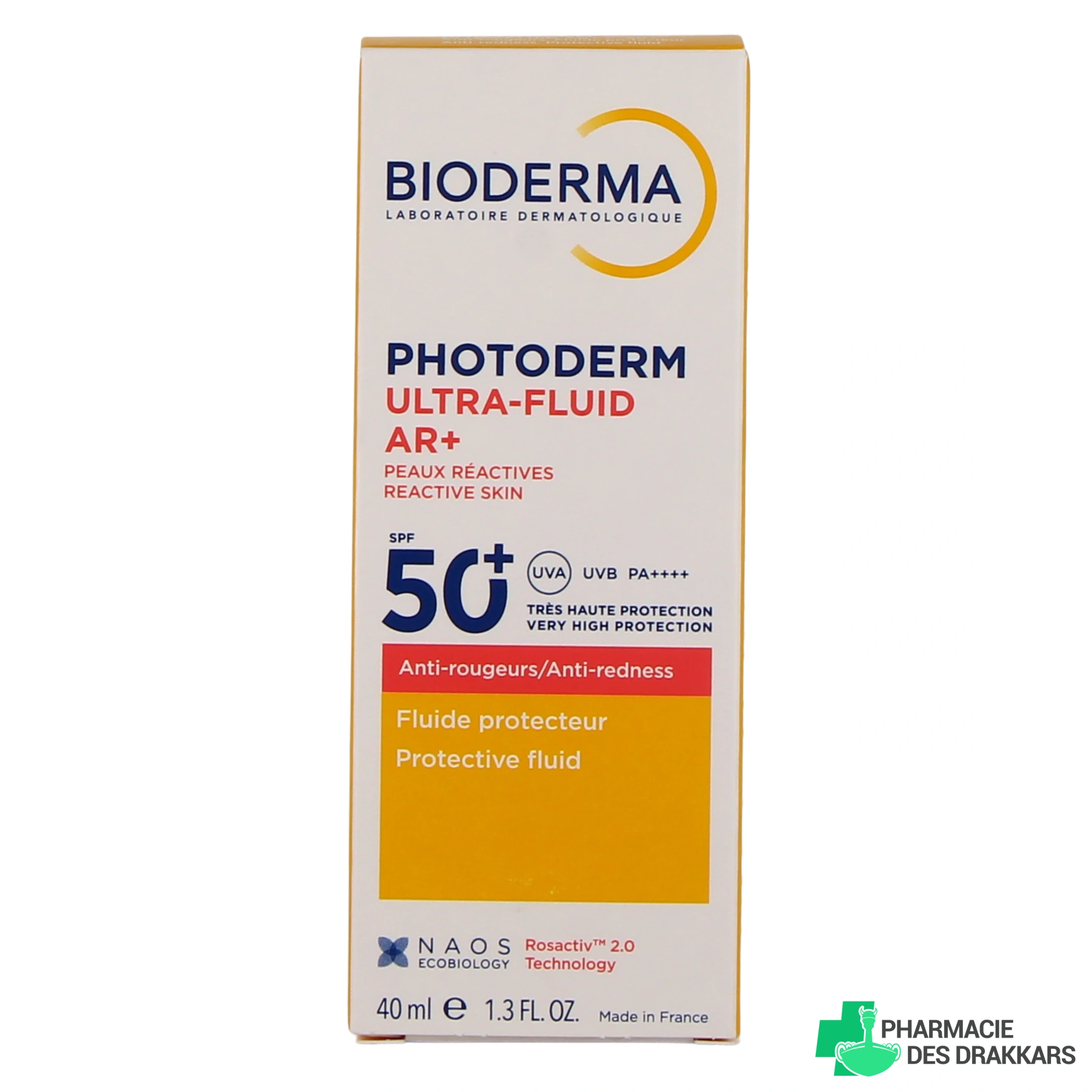 Présentation proposée sur notre pharmacie en ligne pour l'ultra-fluid AR+ SPF50+ Bioderma Photoderm : flacon de 40 ml.