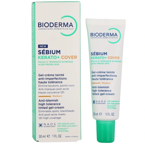 Le laboratoire Bioderma propose Sébium Kerato+ Cover, un soin spécifiquement conçu comme un gel-crème teinté haute tolérance destiné aux personnes ayant une peau à tendance acnéique, et qui s'adresse aussi bien aux adolescents qu'aux adultes. Ce soin innovant apporte une double action en un seul geste : il traite les imperfections visibles sur votre peau, et les camoufle efficacement. L'un des intérêts principaux de ce soin est son action rapide. Il permet en effet d'obtenir des résultats visibles après seulement 2 jours d'utilisation sur les boutons et les points noirs. Sa formule vise à éliminer les imperfections et les marques résiduelles, tout en maintenant l'équilibre cutané grâce à sa haute tolérance.
