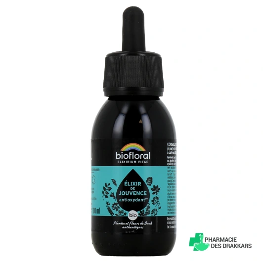 Vous pourrez retrouver le complément alimentaire Biofloral élixir de Jouvence Antioxydant Bio dans les présentations suivantes chez Pharmacie des Drakkars : flacon de 100 ml en verre teinté, avec pipette compte-gouttes.