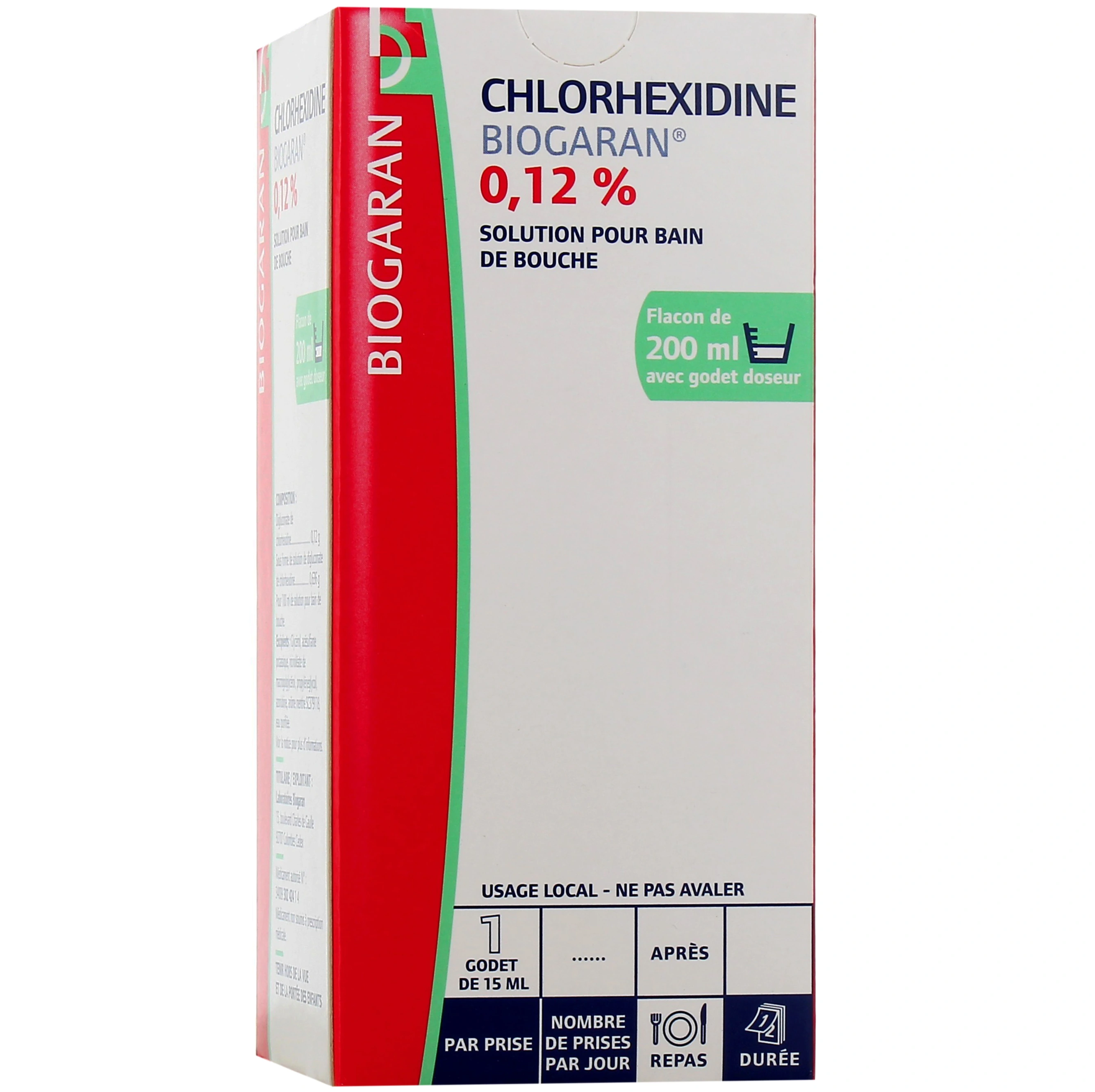 La solution pour bain de bouche Biogaran Chlorhexidine 0,12% est un médicament indiqué pour le traitement d'appoint des infections de la bouche, ainsi que pour les soins après une intervention chirurgicale au niveau de la cavité buccale.