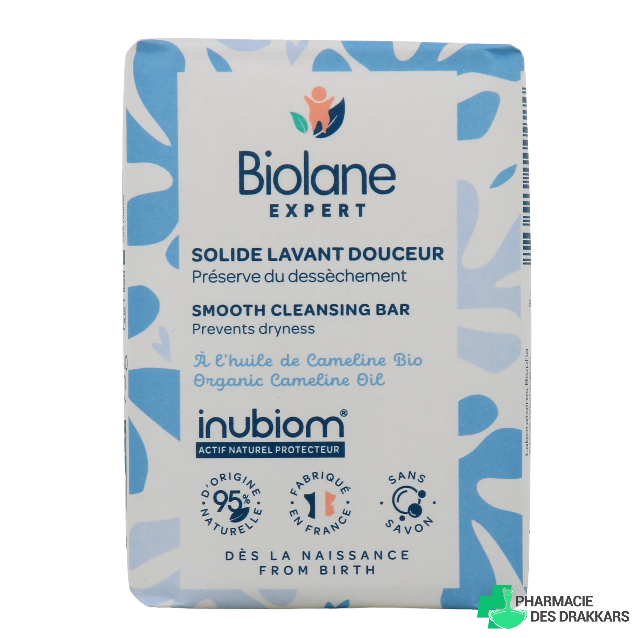 Ce pain lavant est formulé afin de préserver le dessèchement de la peau, et de réduire le risque de tiraillements après la douche ou le bain. Il possède une composition douce, sans savon, et convient ainsi pour une utilisation chez les bébés dès la naissance (pH physiologique adapté à la peau des nourrissons). Le pain solide lavant douceur de Biolane contient de l'huile de caméline Bio, aux vertus apaisantes, ainsi que de la glycérine végétale hydratante.