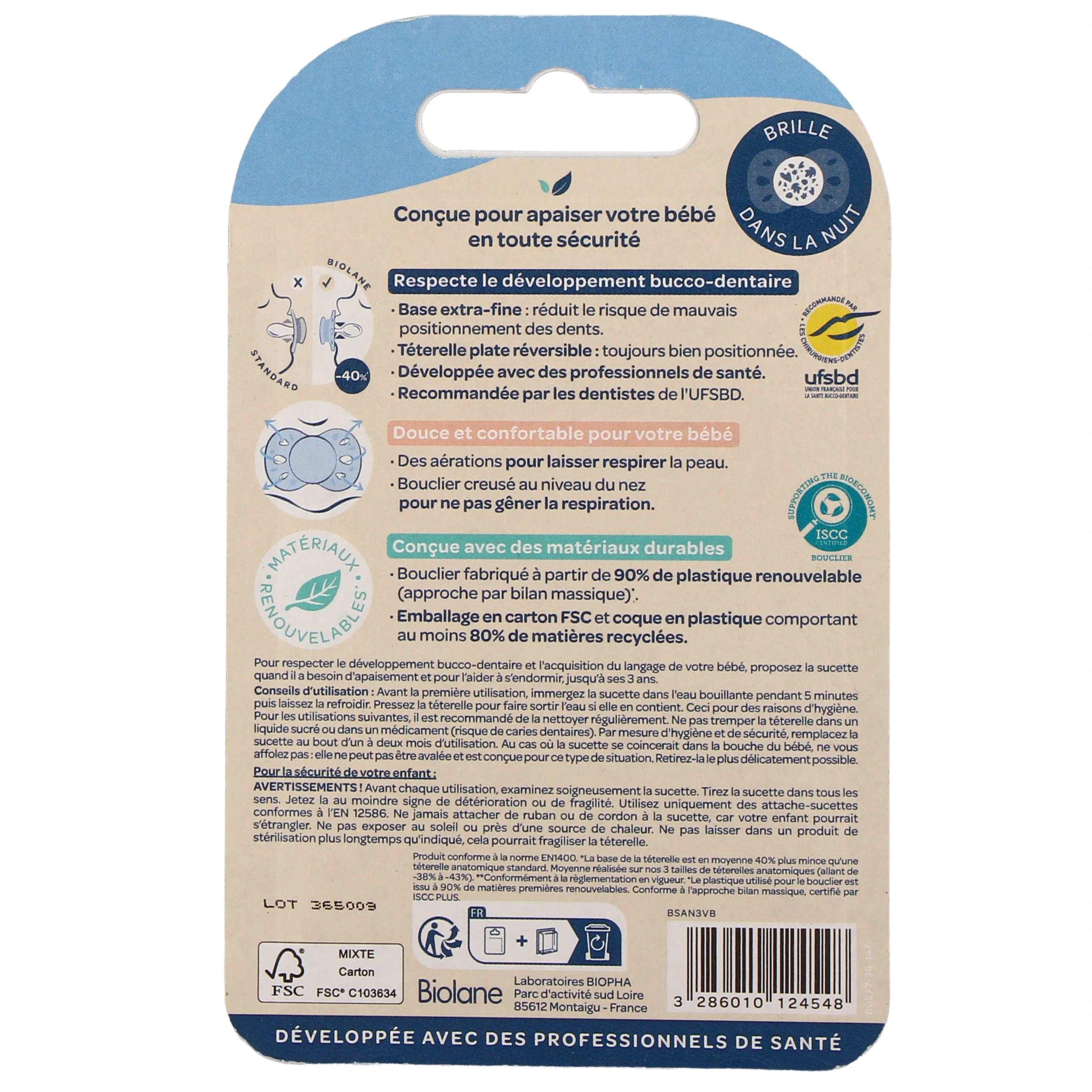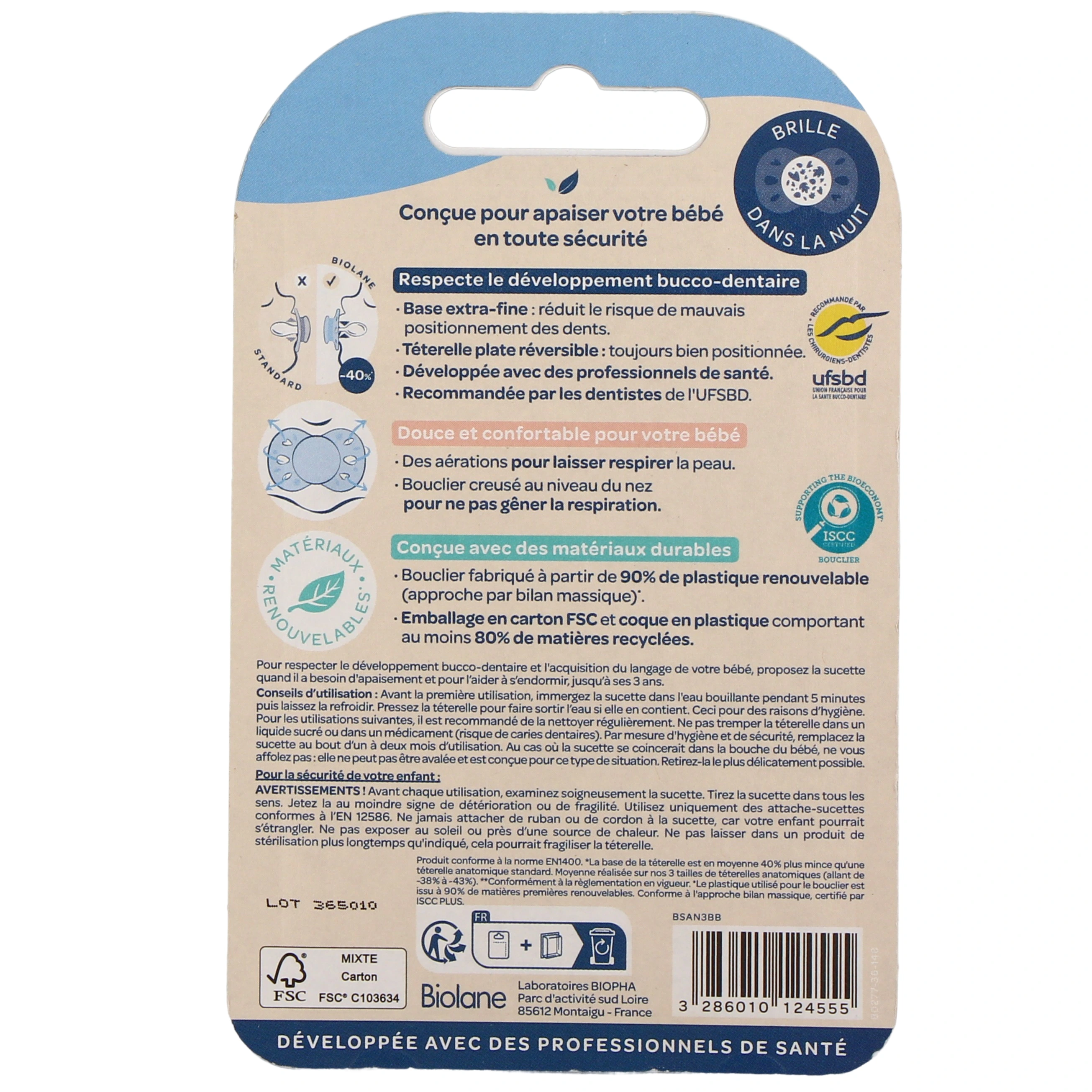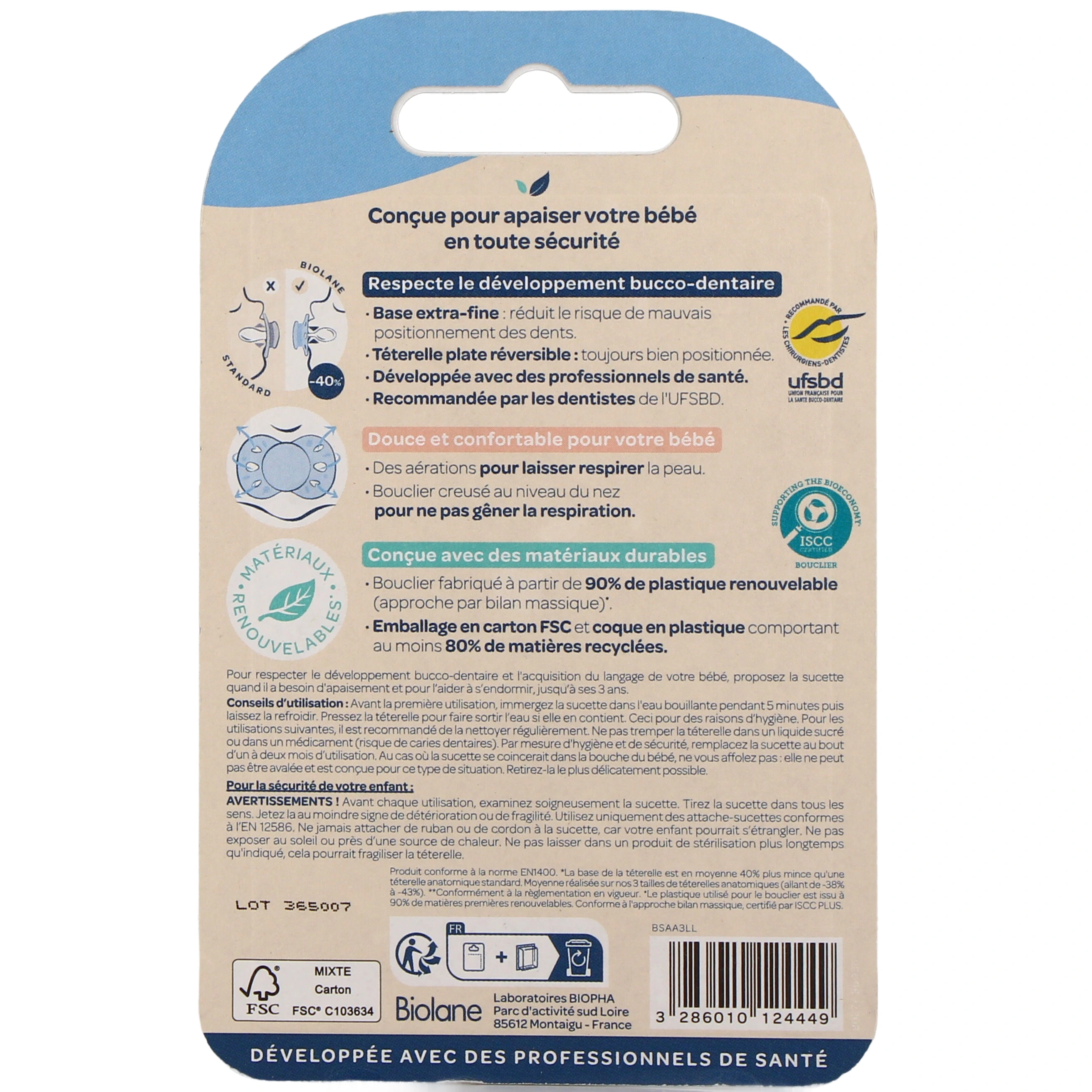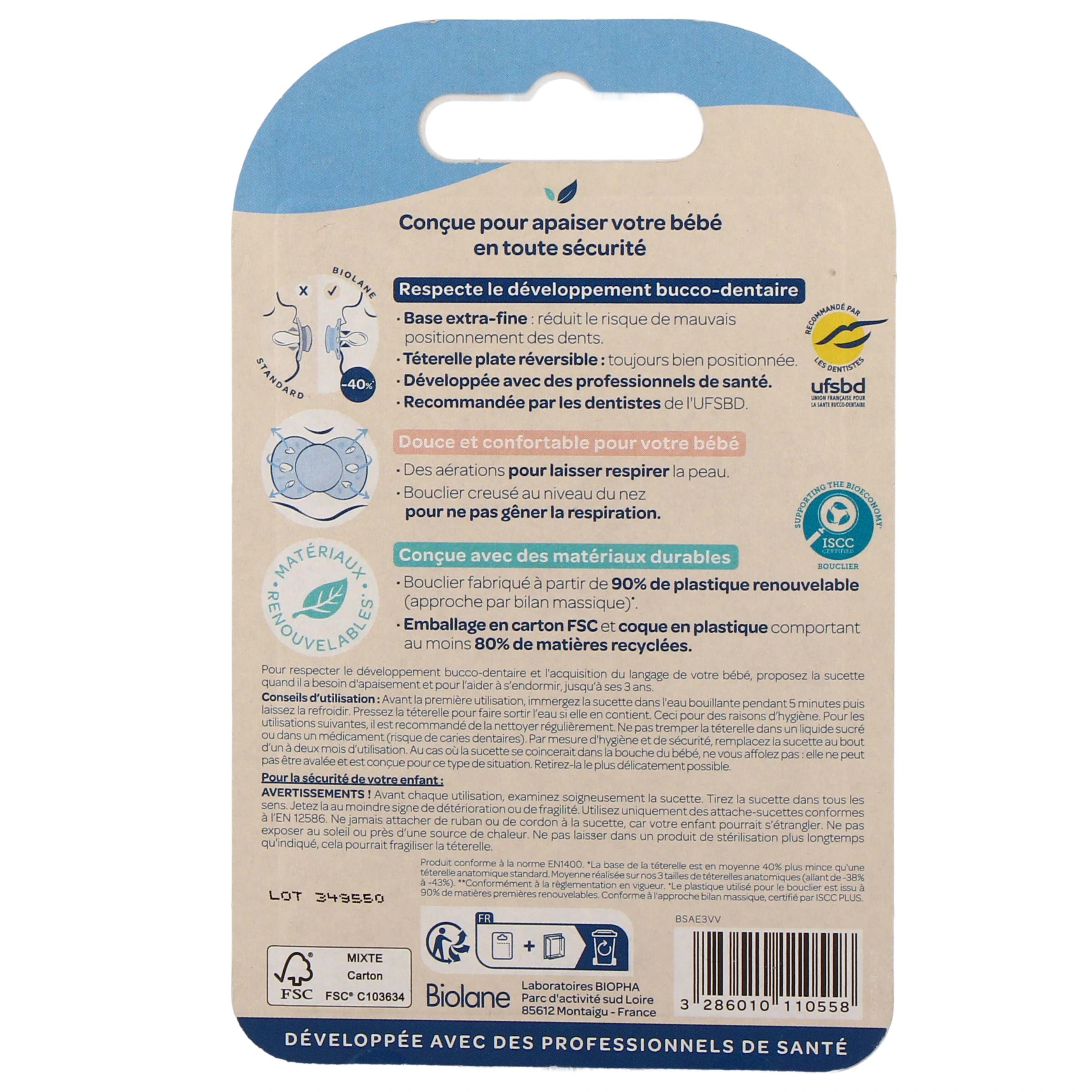 Les sucettes anatomiques +18 mois Biolane sont conçues pour apaiser bébé en toute sécurité tout en respectant son développement bucco-dentaire. Élaborées en collaboration avec des professionnels de santé et recommandées par l'UFSBD, elles disposent d'une base en silicone extra fine. Leur design ergonomique et leurs matériaux sains garantissent confort, durabilité et une excellente acceptation pour les enfants de plus de 18 mois.