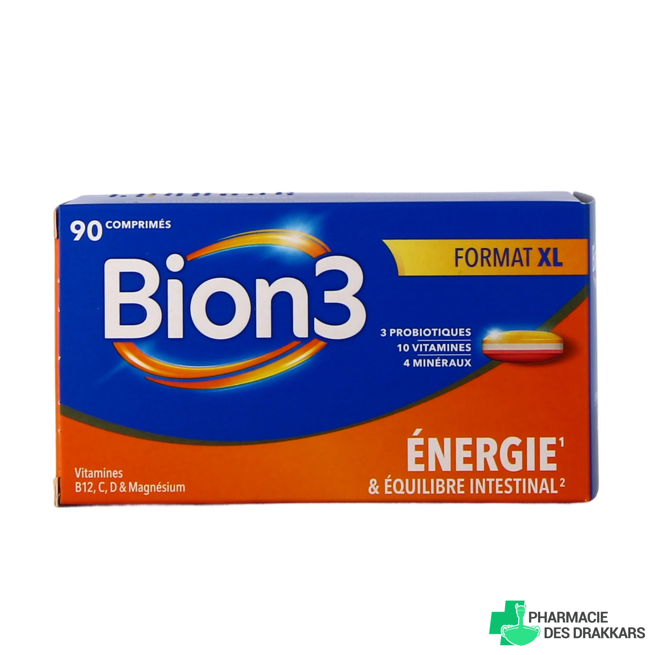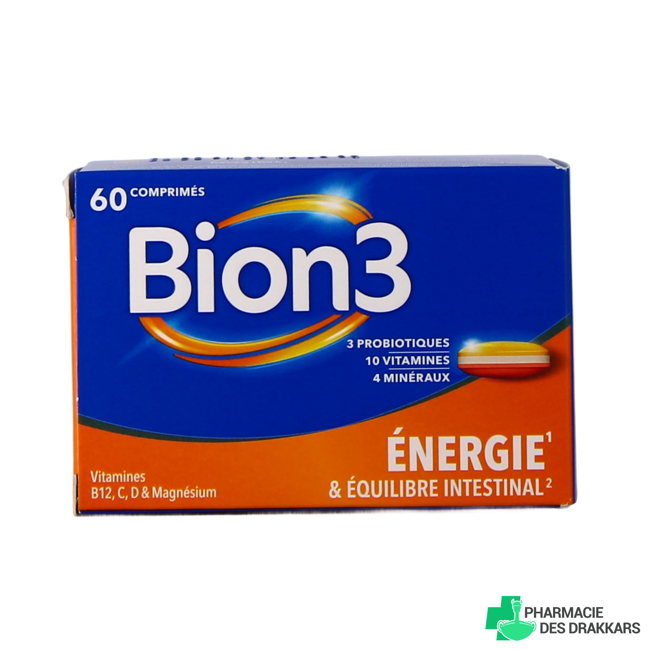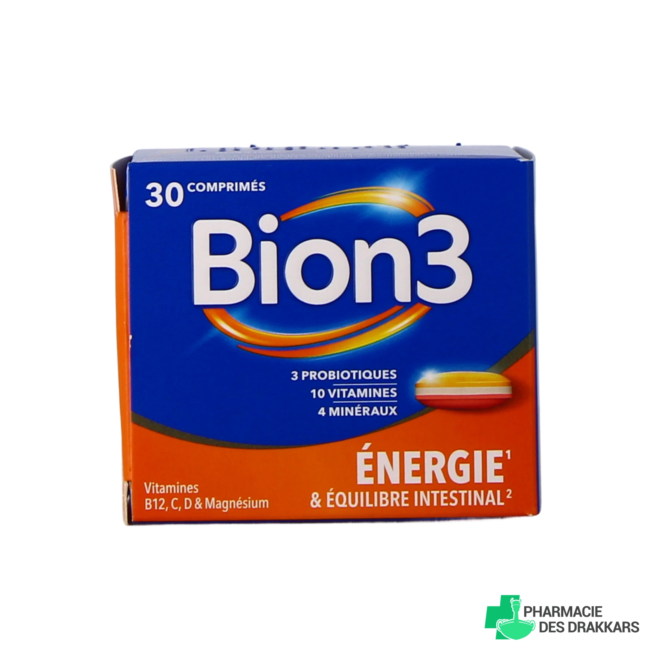 Présentations proposées sur votre pharmacie en ligne : boîte de 30, 60 ou 90 comprimés de BION 3 Énergie & Équilibre Intestinal (sous réserve de disponibilité).